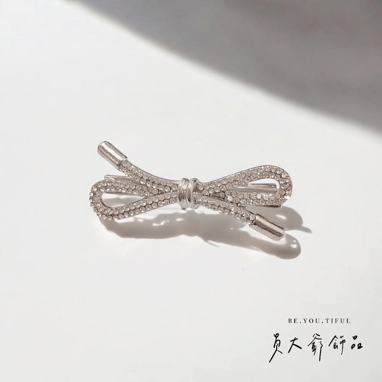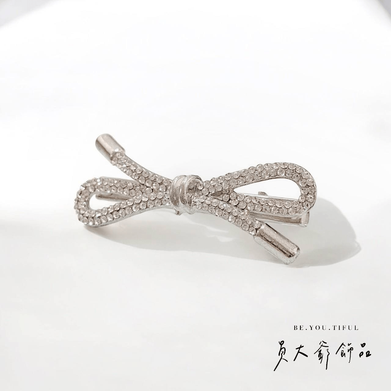 這款髮夾採立體蝴蝶結造型,增加甜美感,並使用高質感金屬材質,鑲嵌閃爍水鑽,閃耀吸睛,而細節處理精緻,完美展現女性柔美與俐落兼具的氣質。