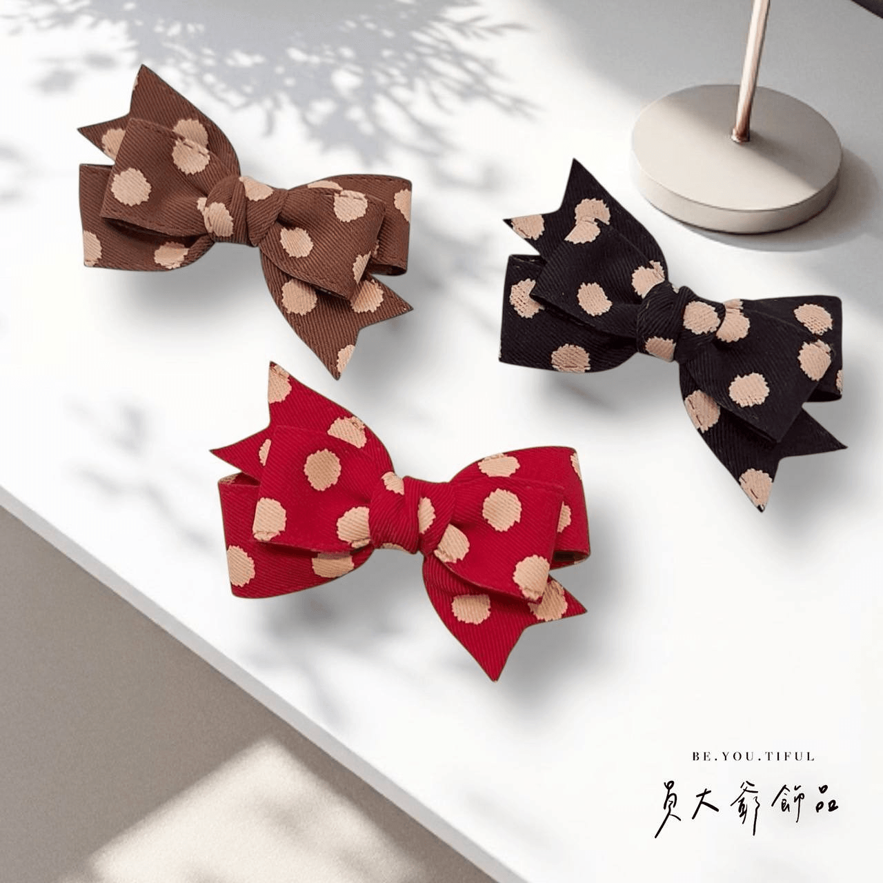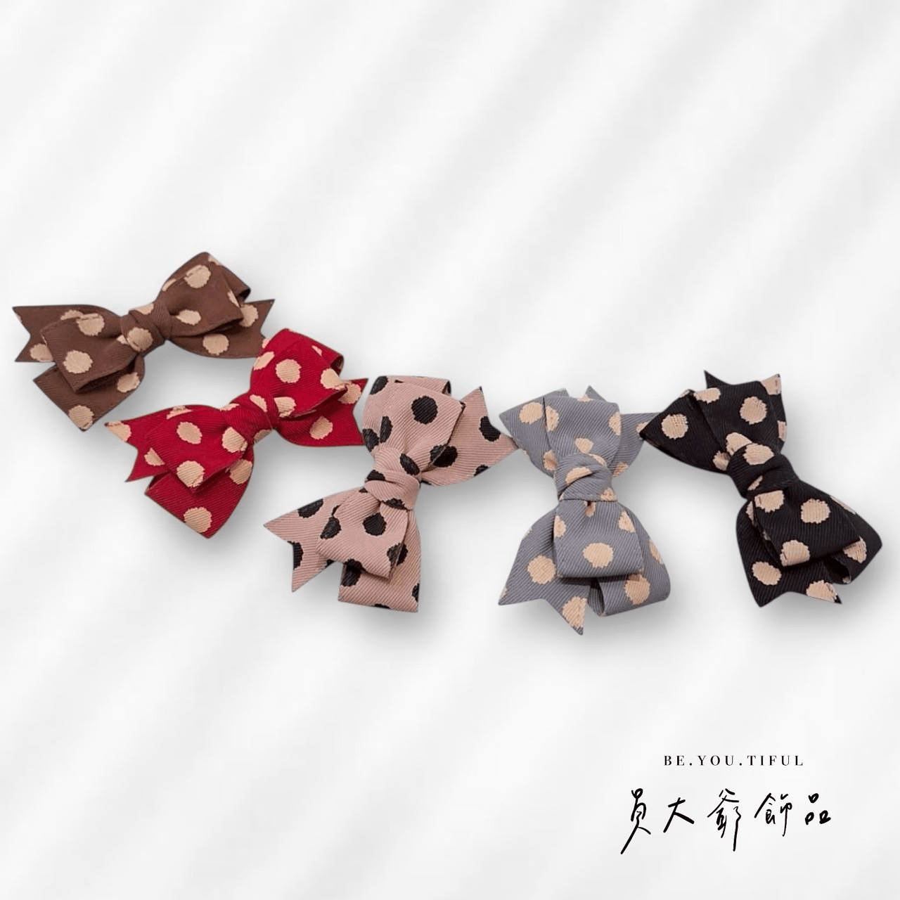 這款有著小香風甜甜的經典波點加上立體蝴蝶結造型,讓甜心妳隨時擁有甜美氛圍感!門市裡有多款顏色,可以隨心挑選,讓甜心今天不論是上班、約會、還是日常穿搭,都能夠快速完成精緻的造型與搭配。