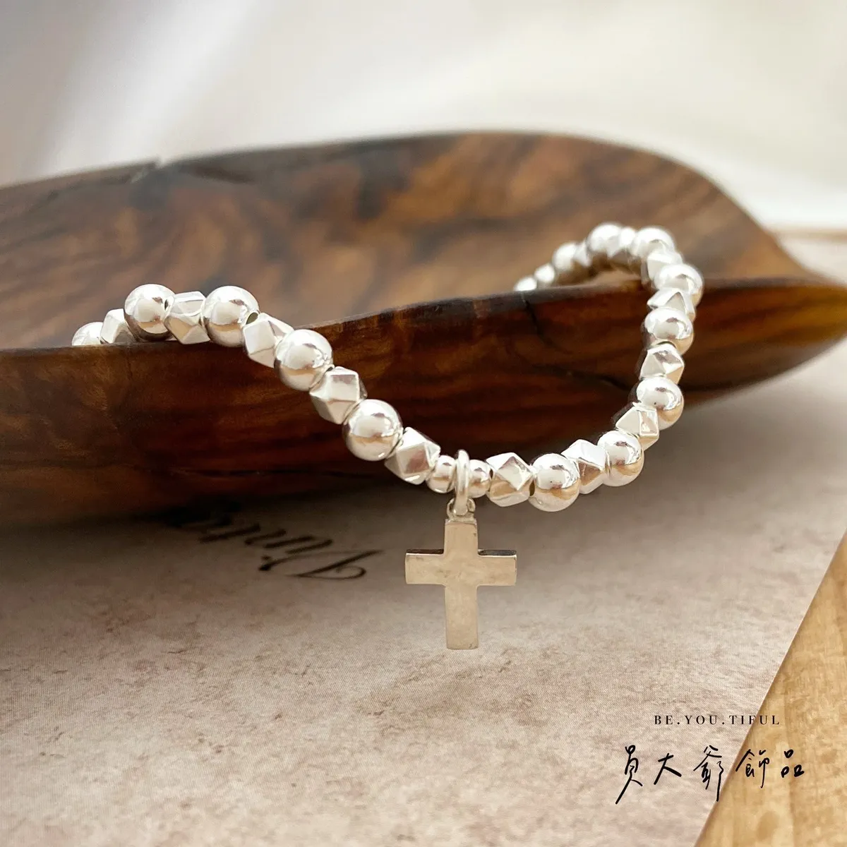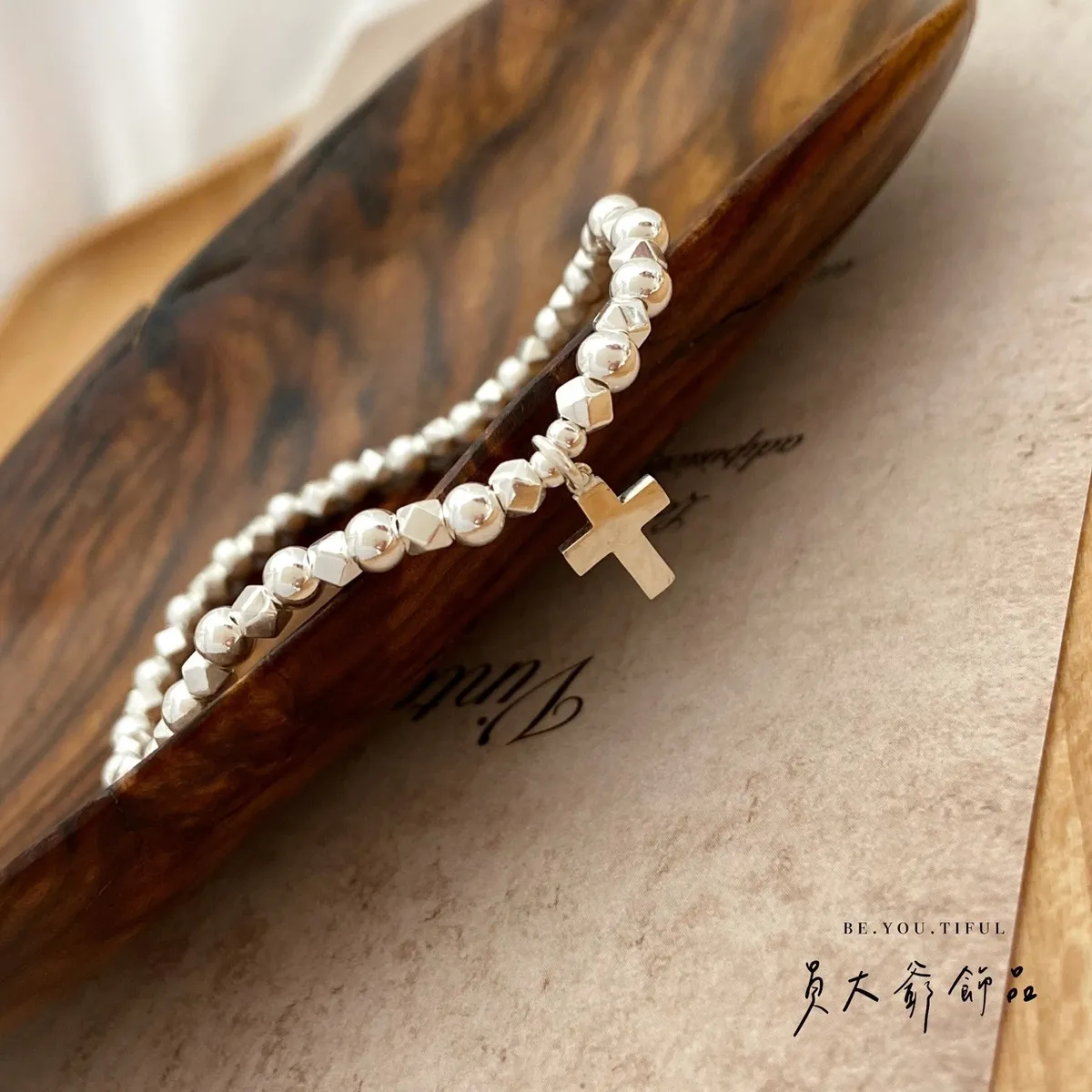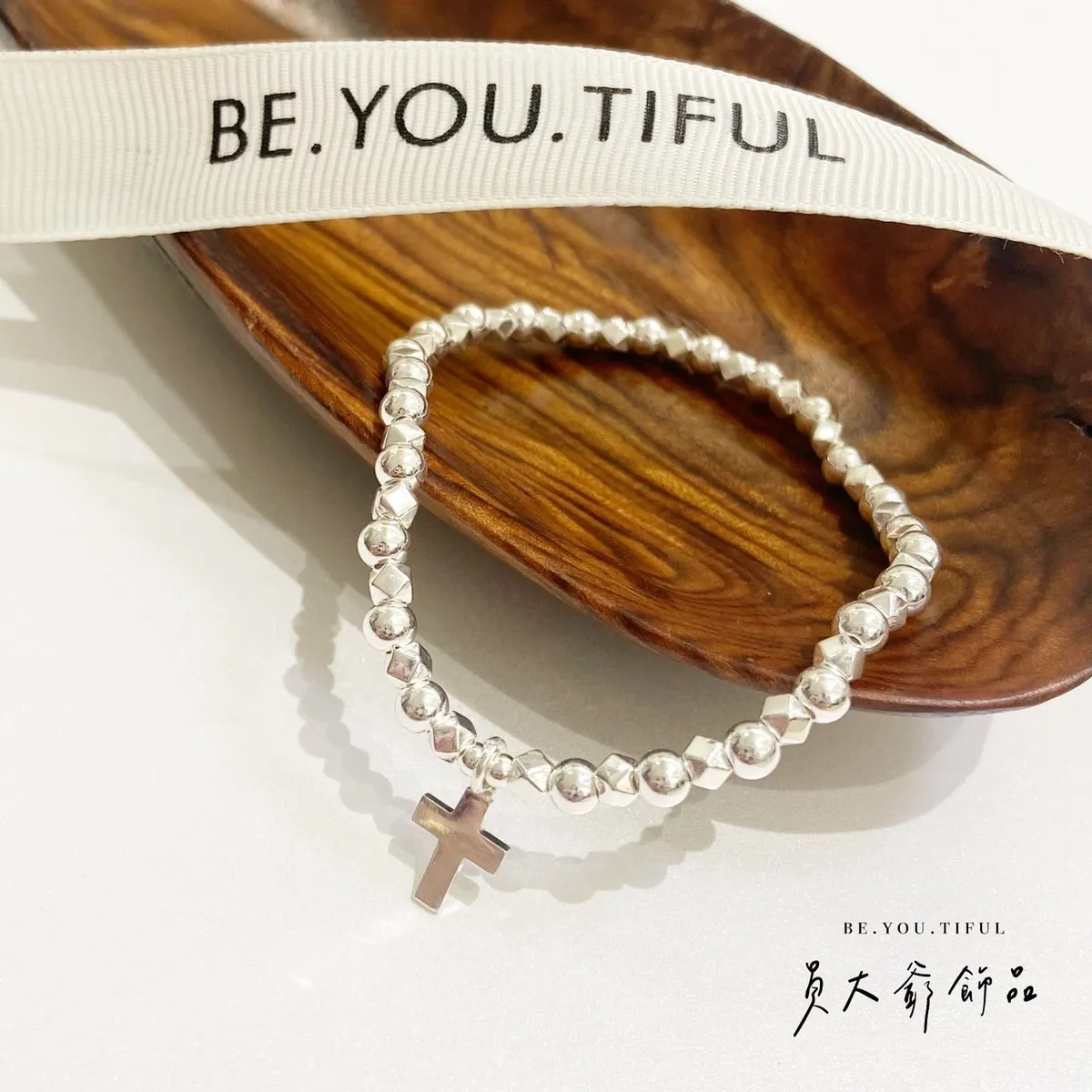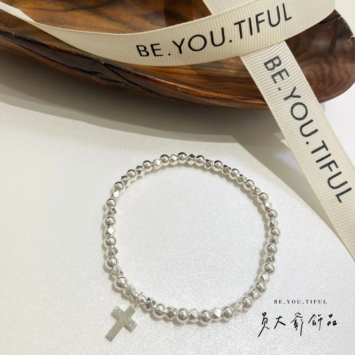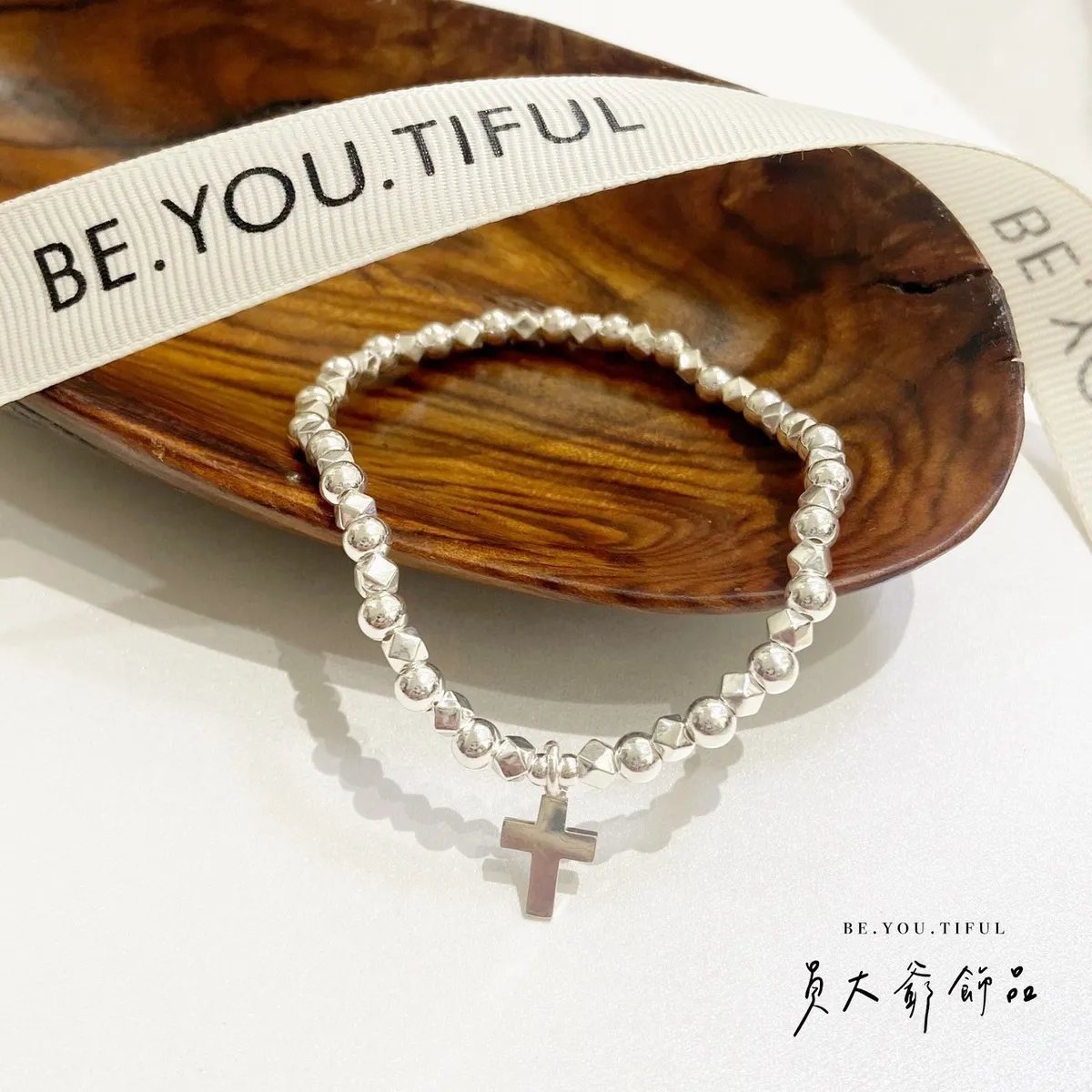 材質:S925純銀 (4MM純銀圓珠+3MM純銀切割方珠)
