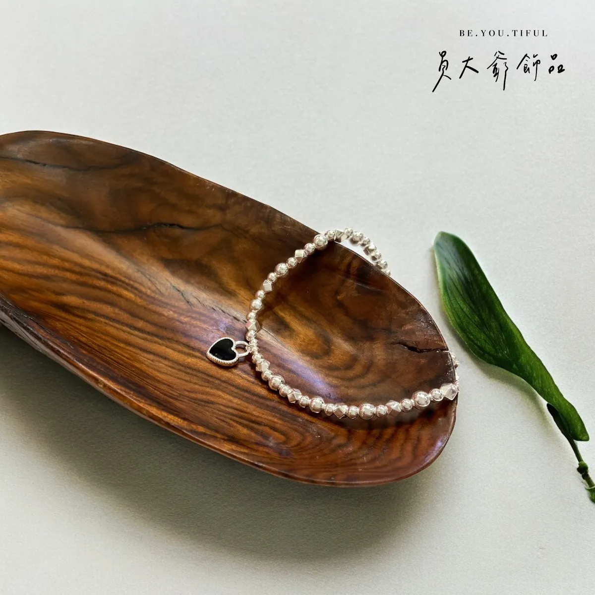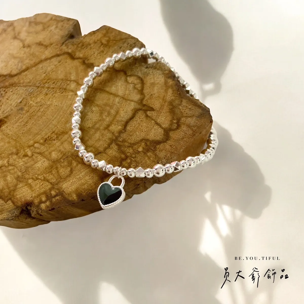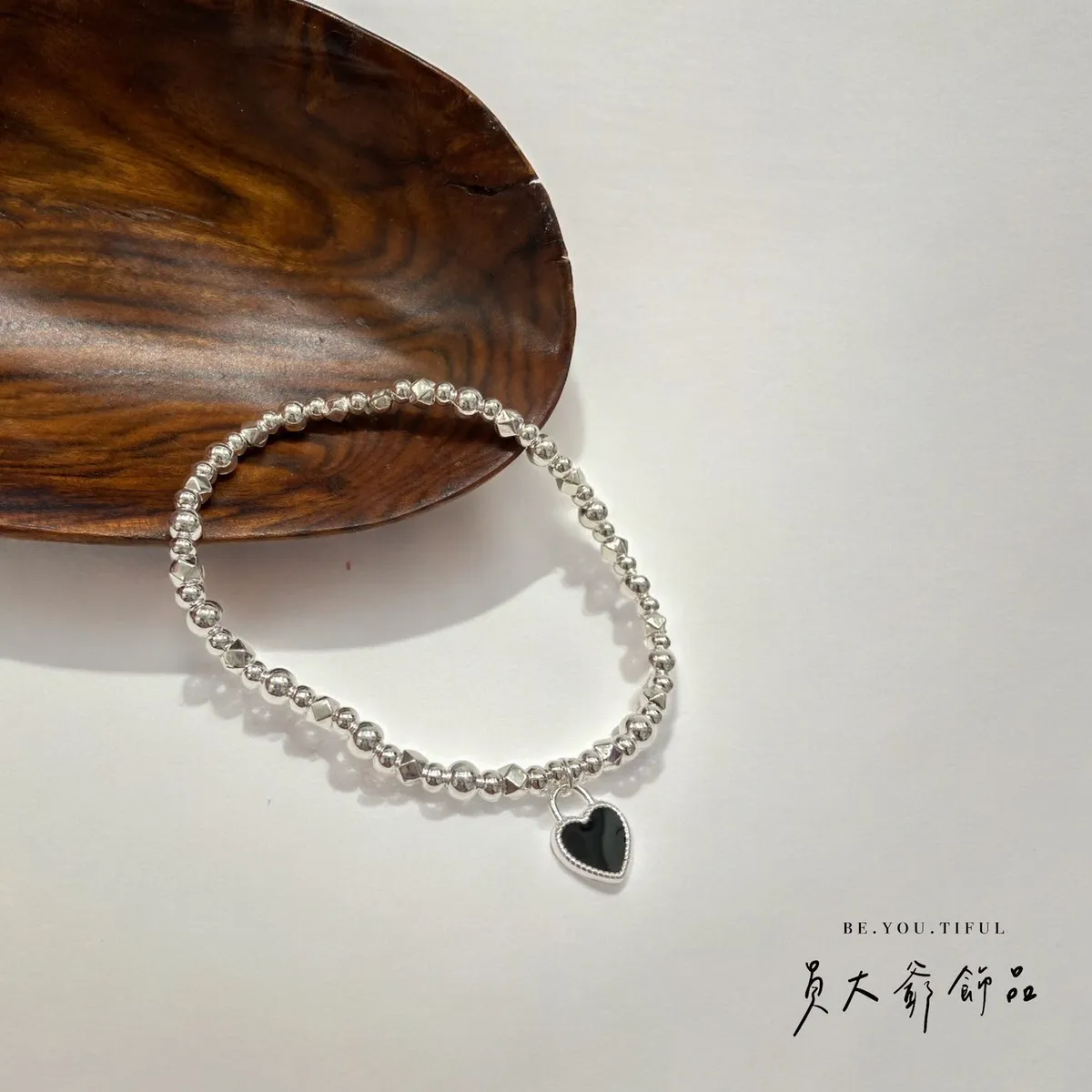 商品描述:擁有一款專屬於甜心的純銀手鍊,這條手鍊的設計簡約優雅,珠珠串聯搭配心形墜飾,散發著精緻與甜美