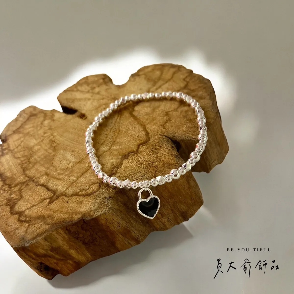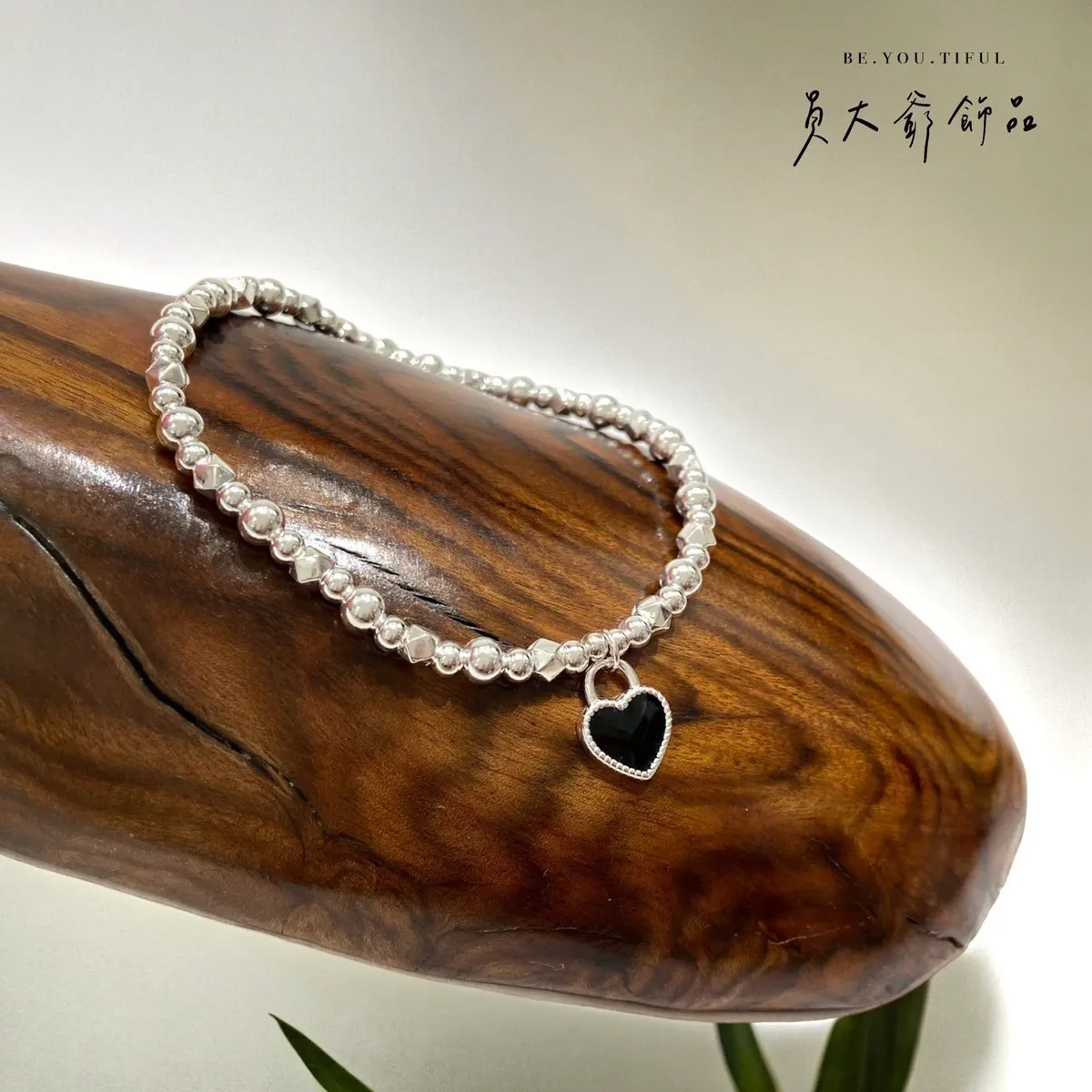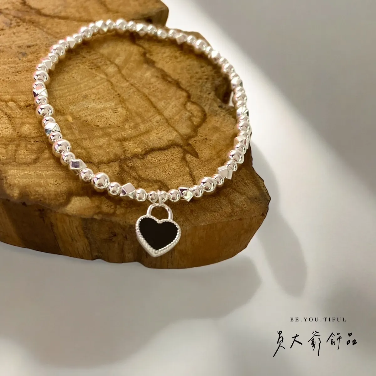 商品描述:擁有一款專屬於甜心的純銀手鍊,這條手鍊的設計簡約優雅,珠珠串聯搭配心形墜飾,散發著精緻與甜美