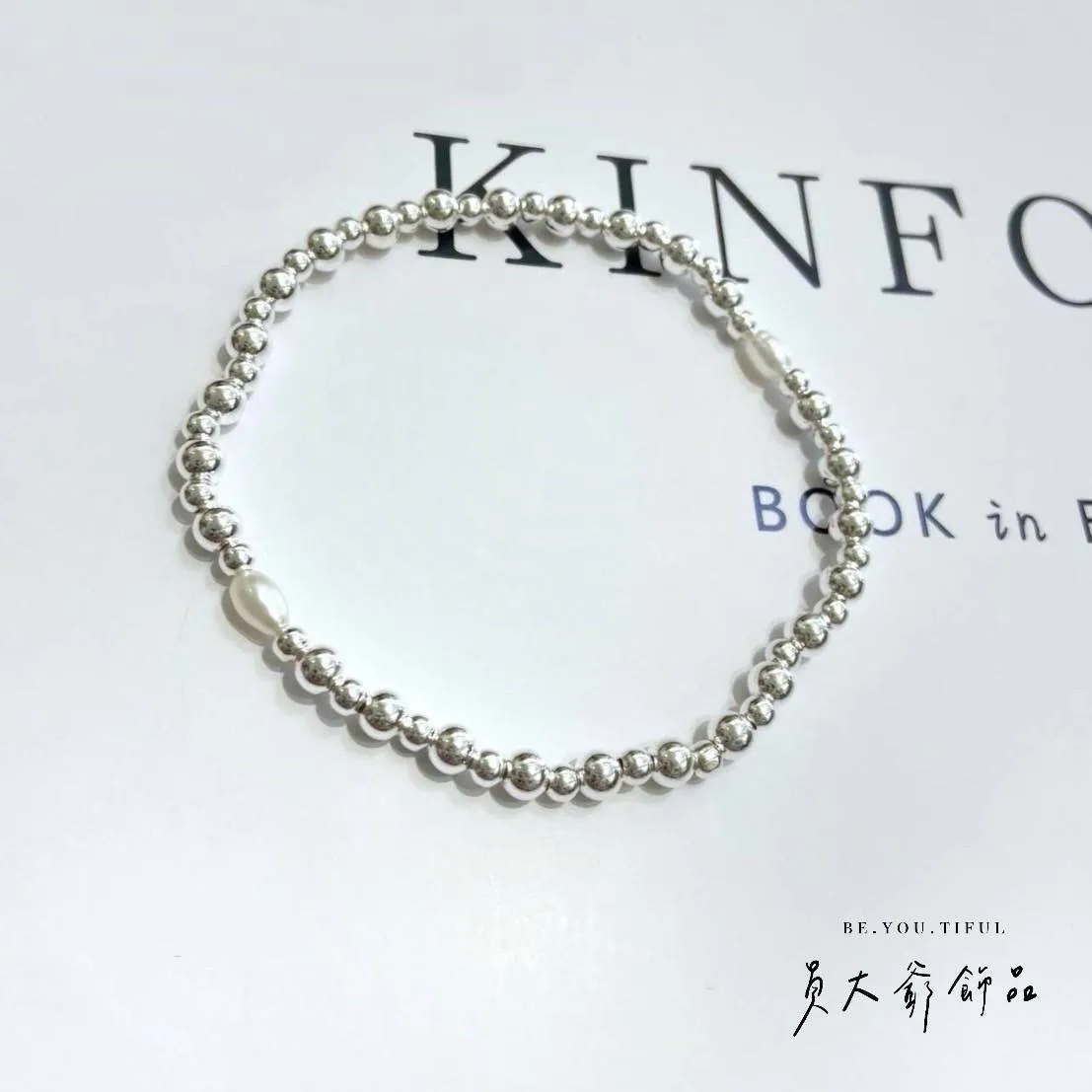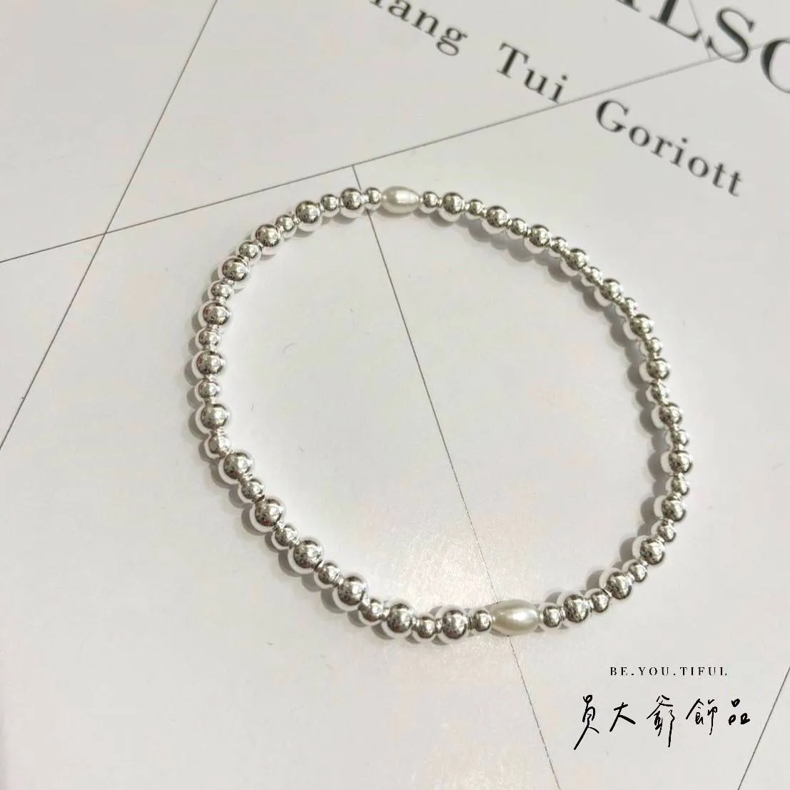 材質:S925純銀 (3MM純銀圓珠+4MM純銀圓珠+天然淡水珍珠)