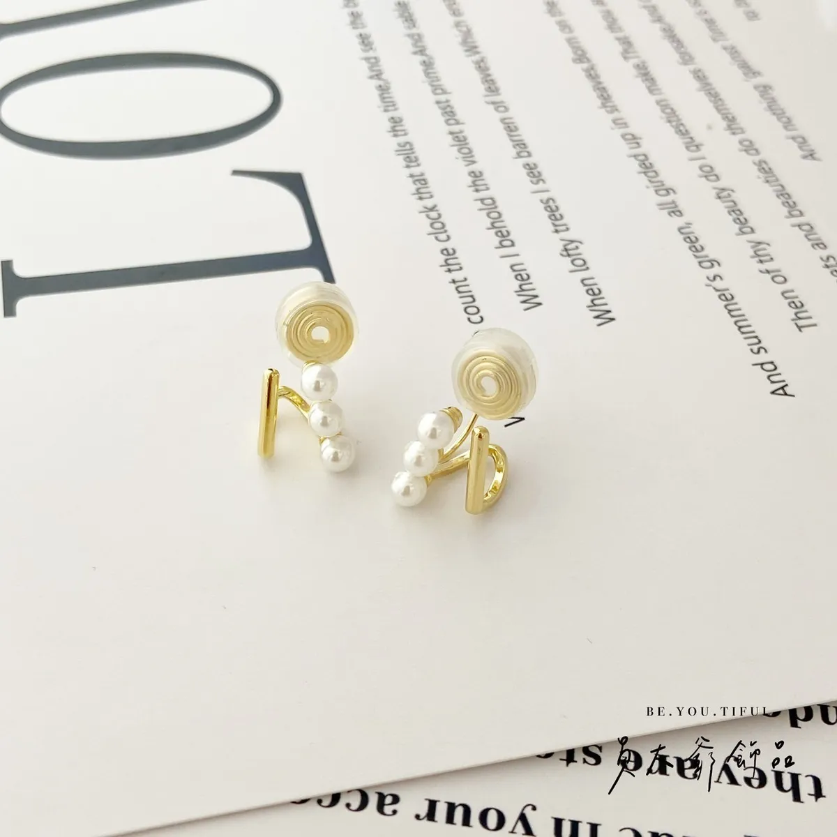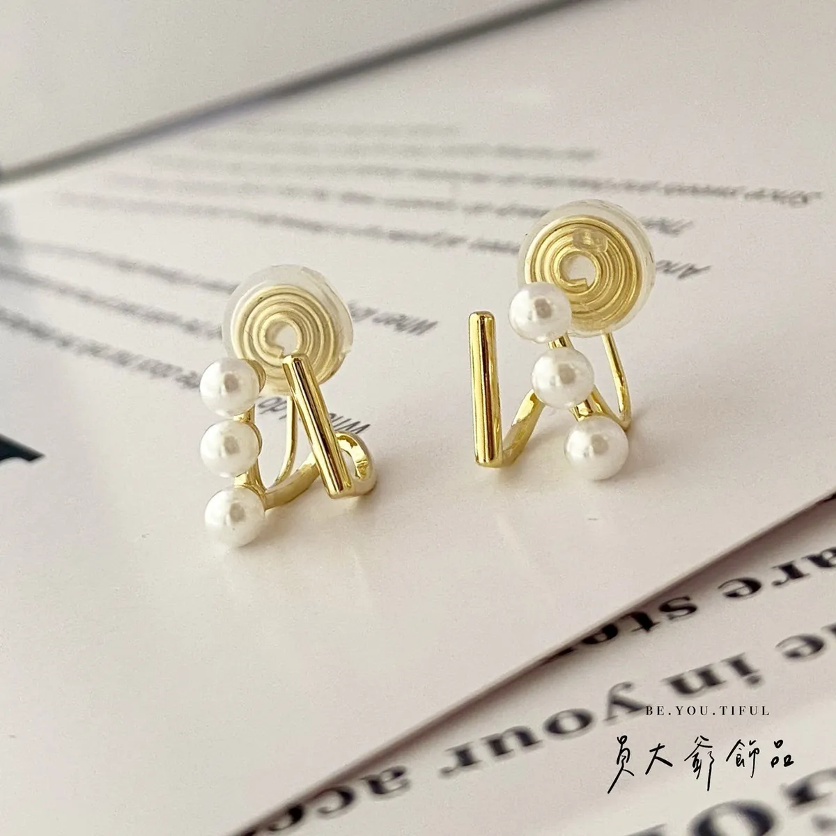 商品描述:這款耳夾以簡約又優雅的設計,將時尚與品味完美結合。金色金屬線條宛如旋轉的絲帶,搭配三顆圓潤珍珠,象徵著純潔與高貴,為耳際增添一抹迷人的光彩。不穿耳也能擁有時尚品味,讓甜心每次轉身都閃耀動人🧚