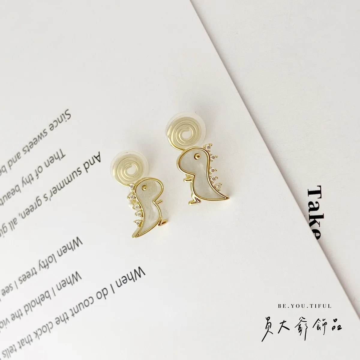 商品描述:以其獨特的恐龍設計和精緻的貝殼細節吸引眼球,是完美融合優雅與趣味的飾物。耳夾的底座採用鍍金處理增添了一抹奢華感,而小巧的鋯石點綴則閃耀著迷人的光芒,使得每一個動作都散發著微妙的光彩及展現自我風格。無論是日常配戴還是特殊活動,都能為甜心增添一份獨特的魅力和風采。「漫步月球」更是表達一種生活態度,享受生活中的每一份美好。