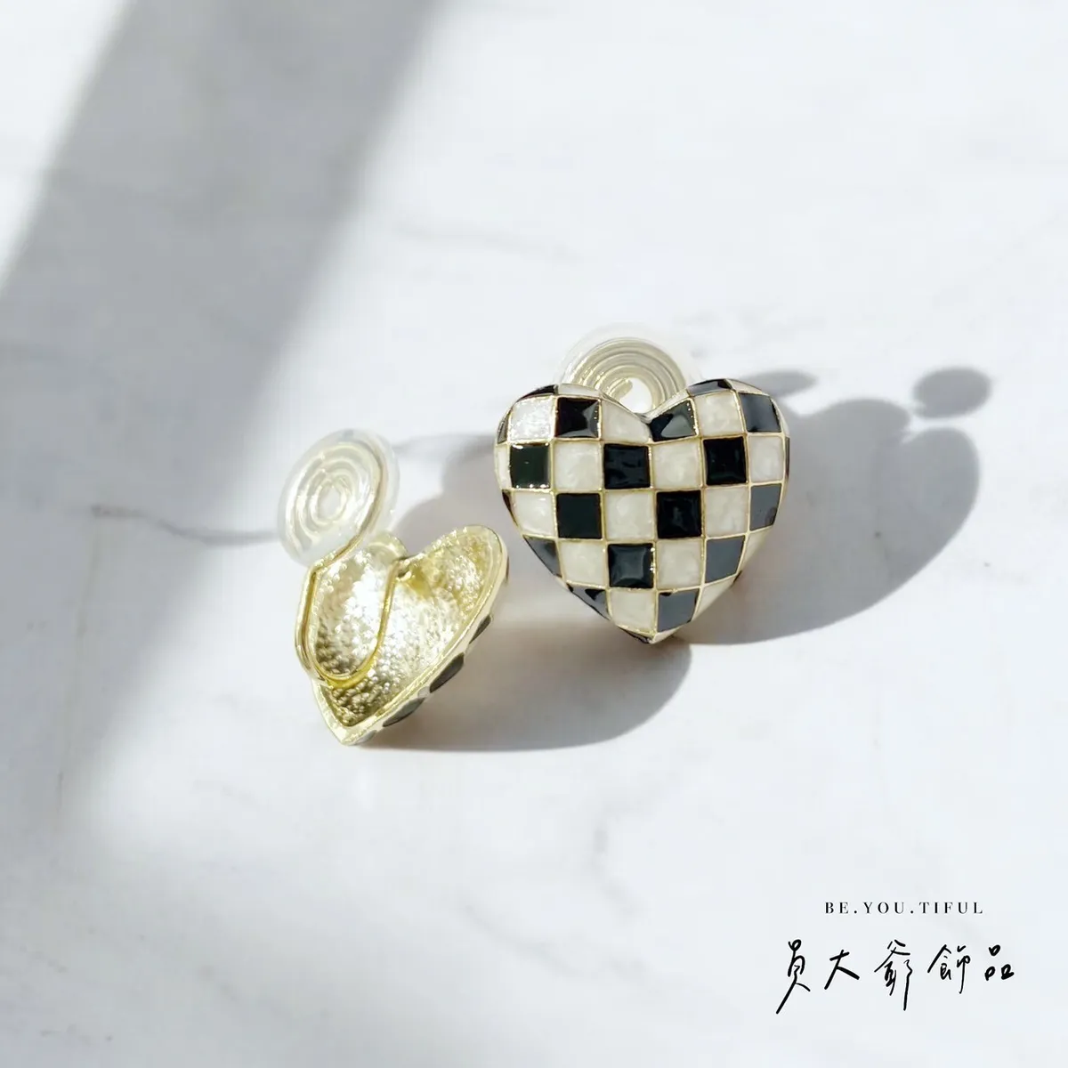 商品描述:獨特的黑白方格色調融合貝殼光澤的細緻質感,展現出獨特的時尚品味,讓人一見傾心,不僅增添優雅氣質,還能讓您在眾人中脫穎而出。舒適的配戴感受,無需耳洞即可輕鬆展現品味與個性,適合各種場合搭配,為您的穿搭添上最後的完美點綴!