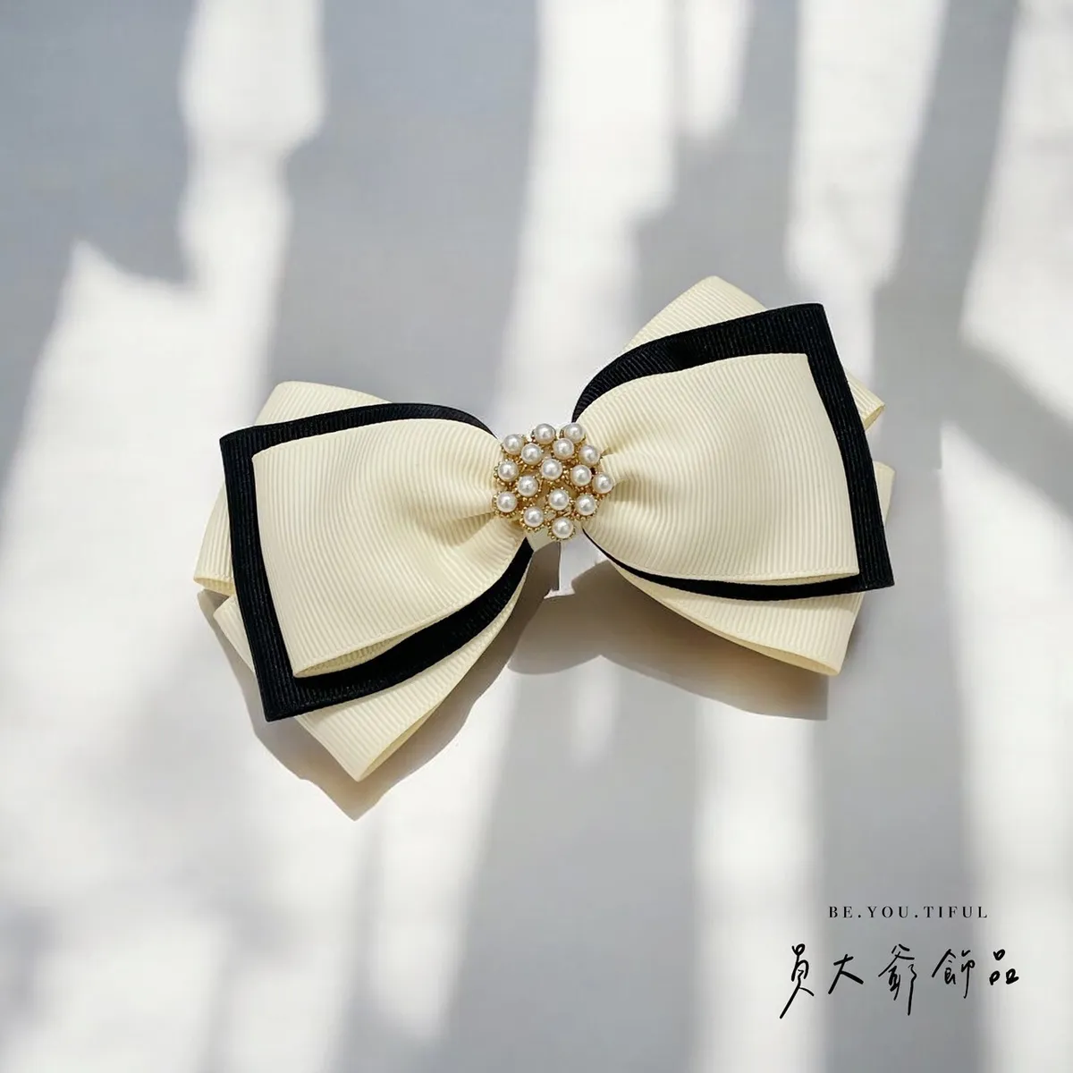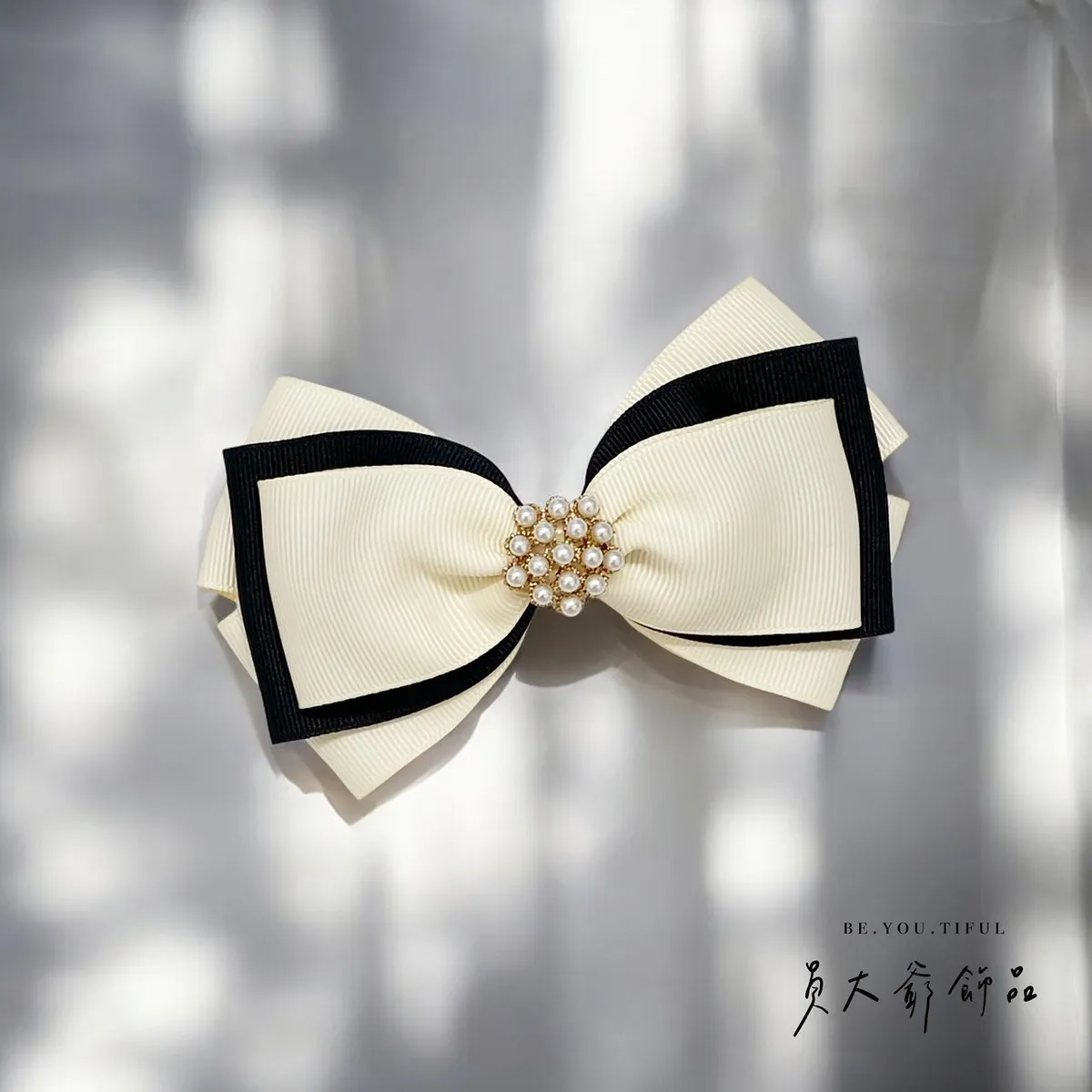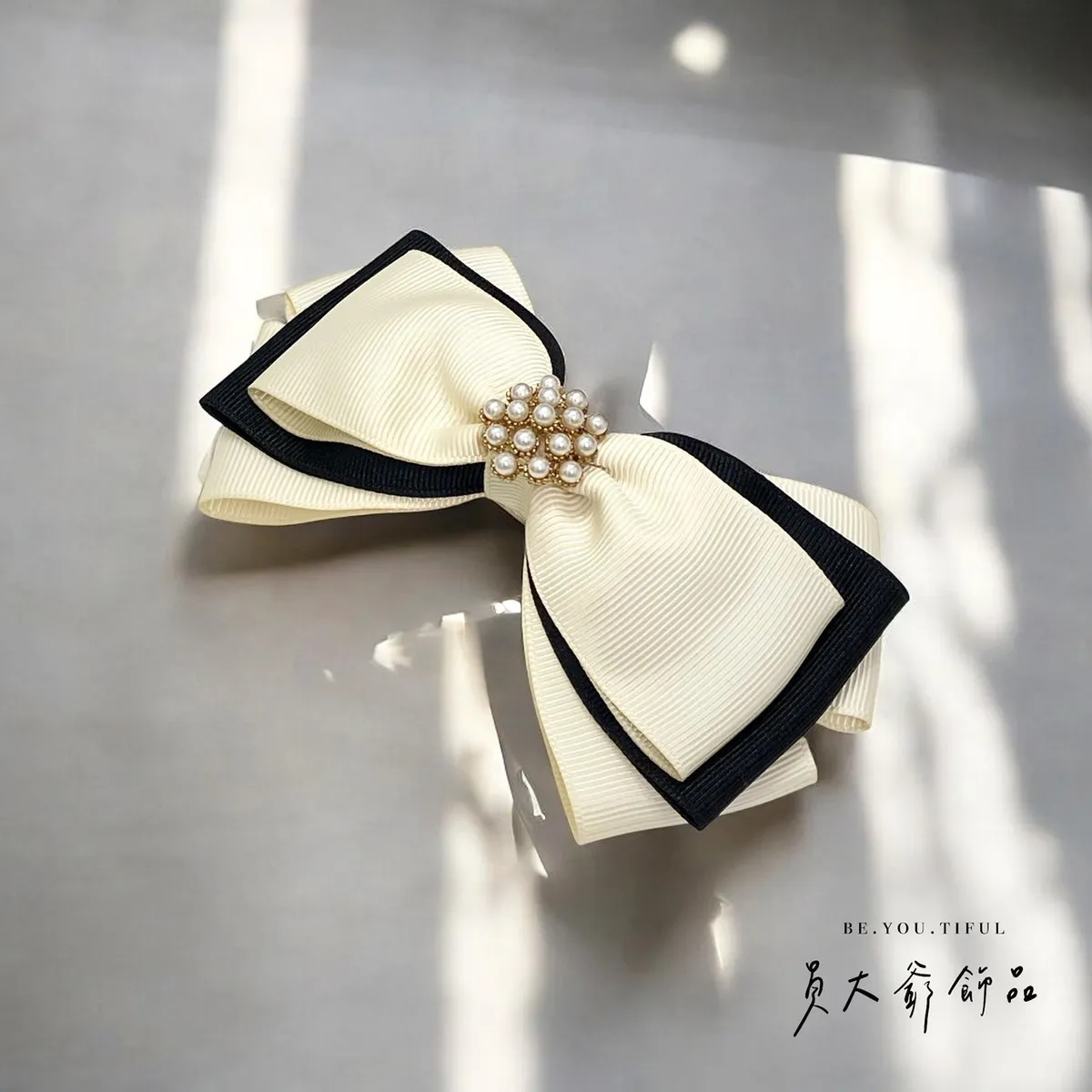 商品描述:以簡約優雅的設計,搭配柔和的米白色與俐落的黑色,打造出高貴不凡的視覺效果。中央點綴著精緻的珍珠串飾,仿佛一顆顆光芒閃耀的星辰,讓人不禁為其細膩的設計著迷。無論是日常造型還是正式場合,這款髮飾都能為甜心增添一抹低調奢華的氣息,同時展現出個人品味。溫馨提醒