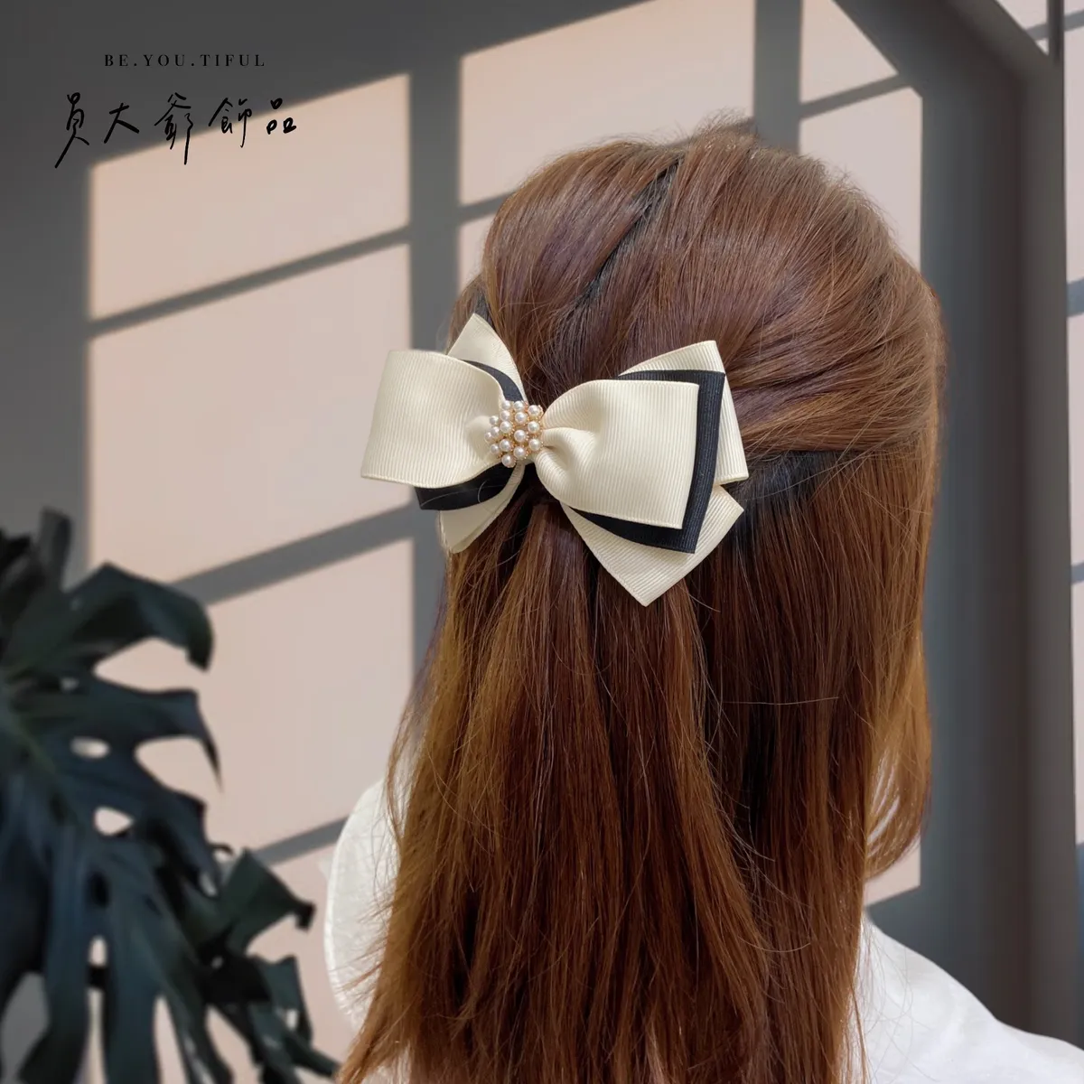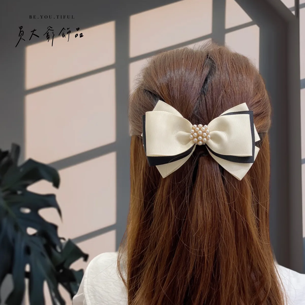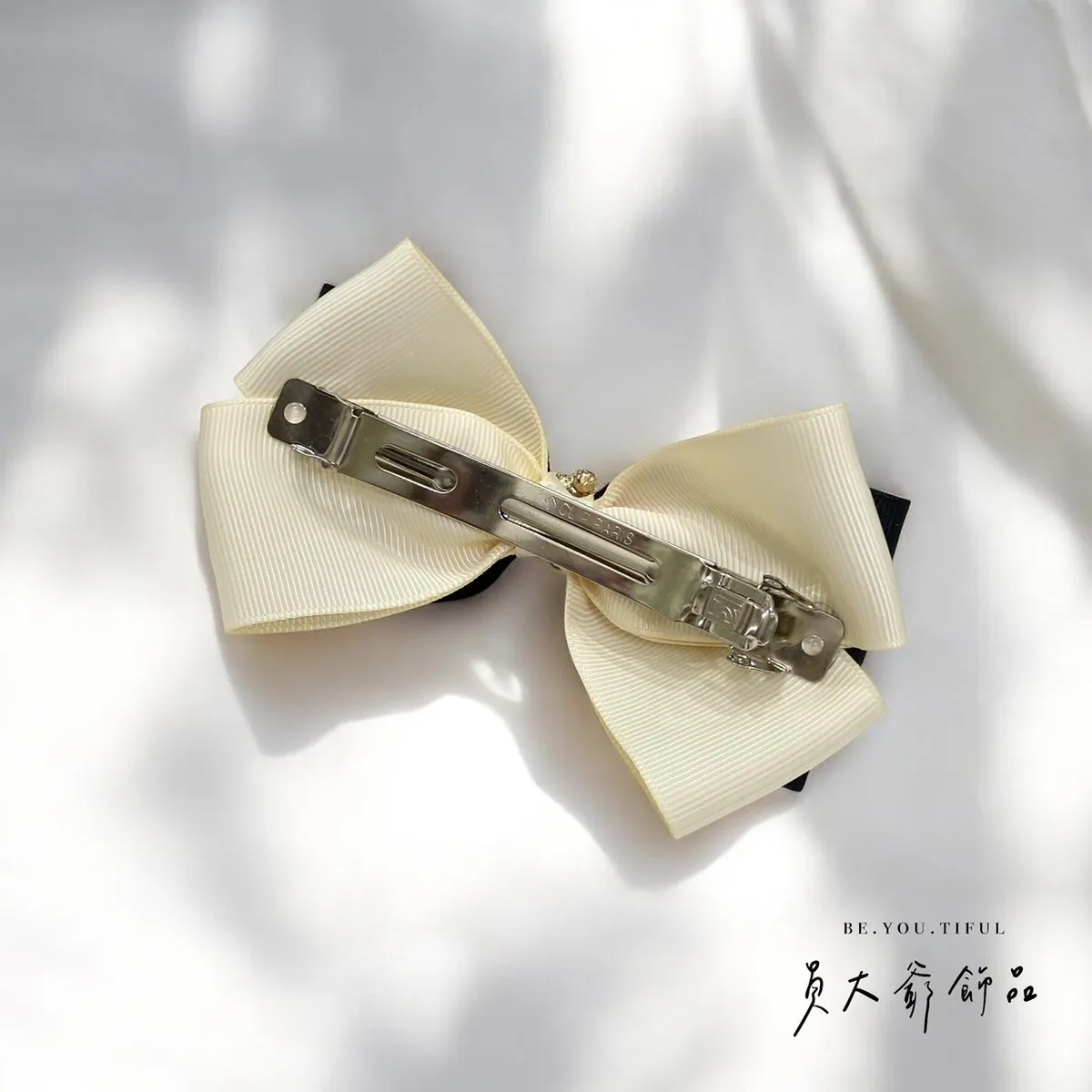 商品描述:以簡約優雅的設計,搭配柔和的米白色與俐落的黑色,打造出高貴不凡的視覺效果。中央點綴著精緻的珍珠串飾,仿佛一顆顆光芒閃耀的星辰,讓人不禁為其細膩的設計著迷。無論是日常造型還是正式場合,這款髮飾都能為甜心增添一抹低調奢華的氣息,同時展現出個人品味。溫馨提醒