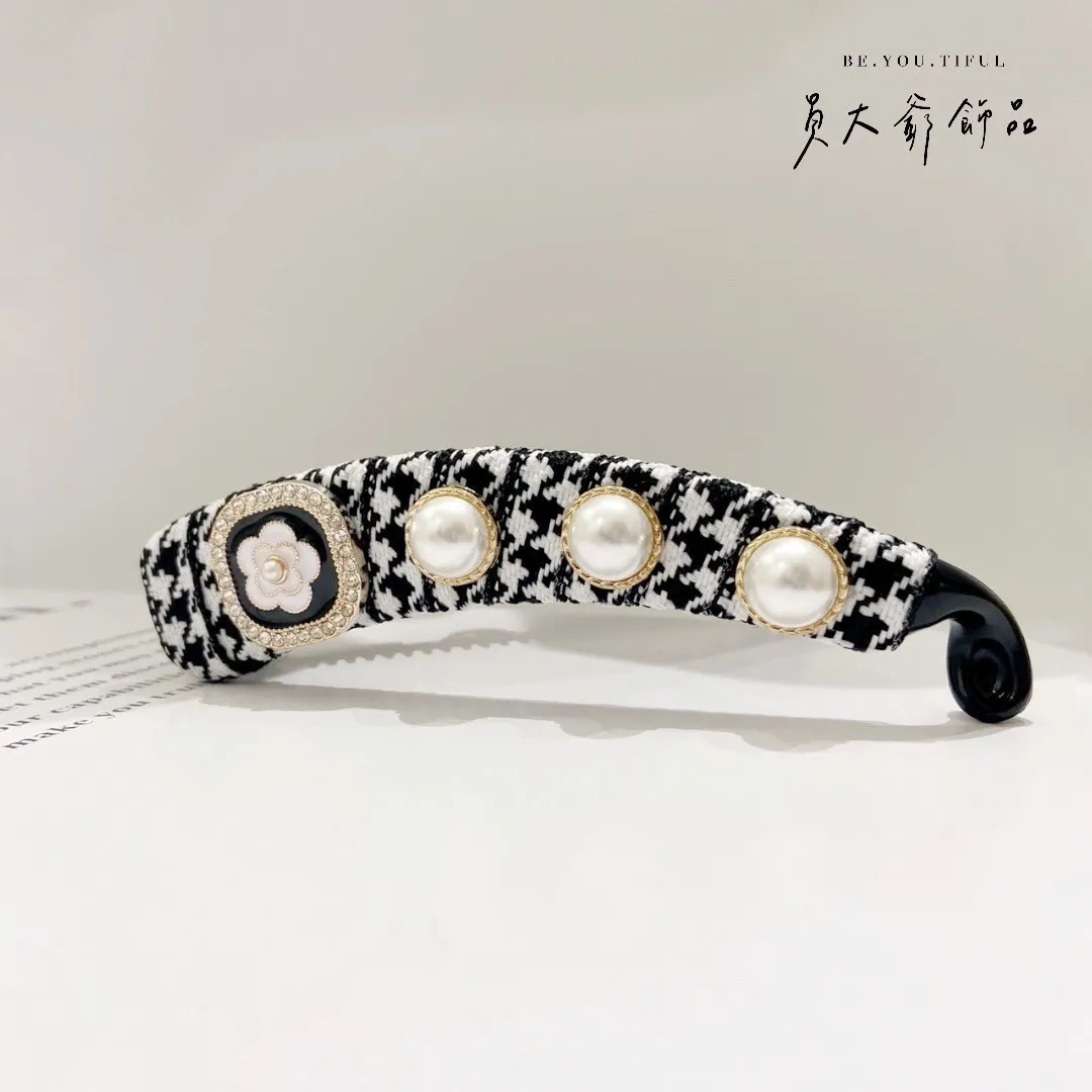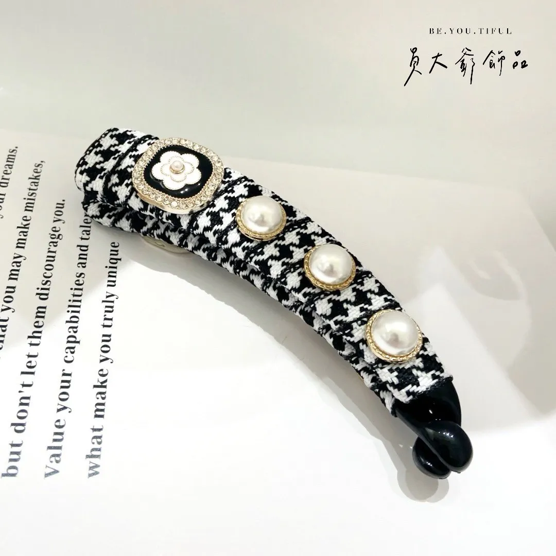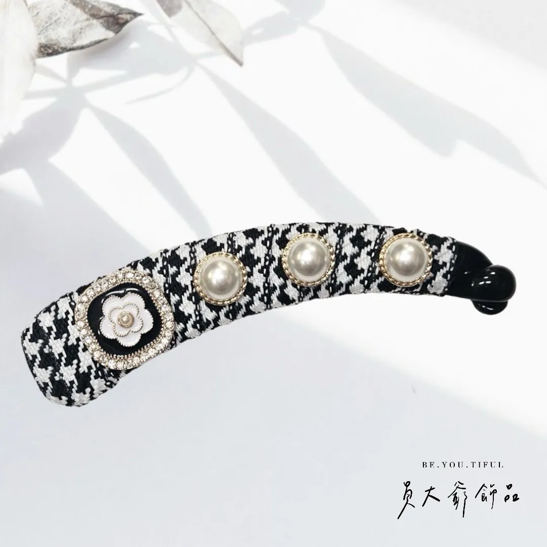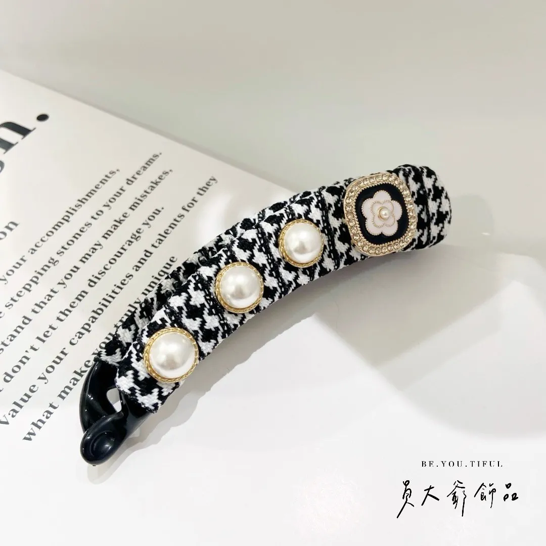 無論是上班還是想在日常中散發迷人光彩,此款香蕉夾都能為甜心增添獨特氣質。這款結合經典的黑白格紋設計、珍珠裝飾,以及花形細節,突出其高雅精緻的風格,是甜心們不可錯過的飾物🥰