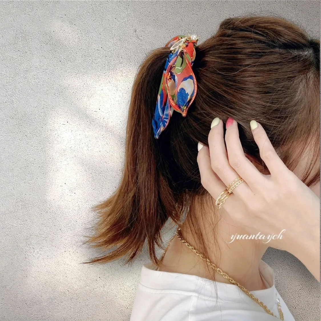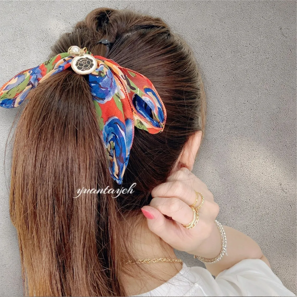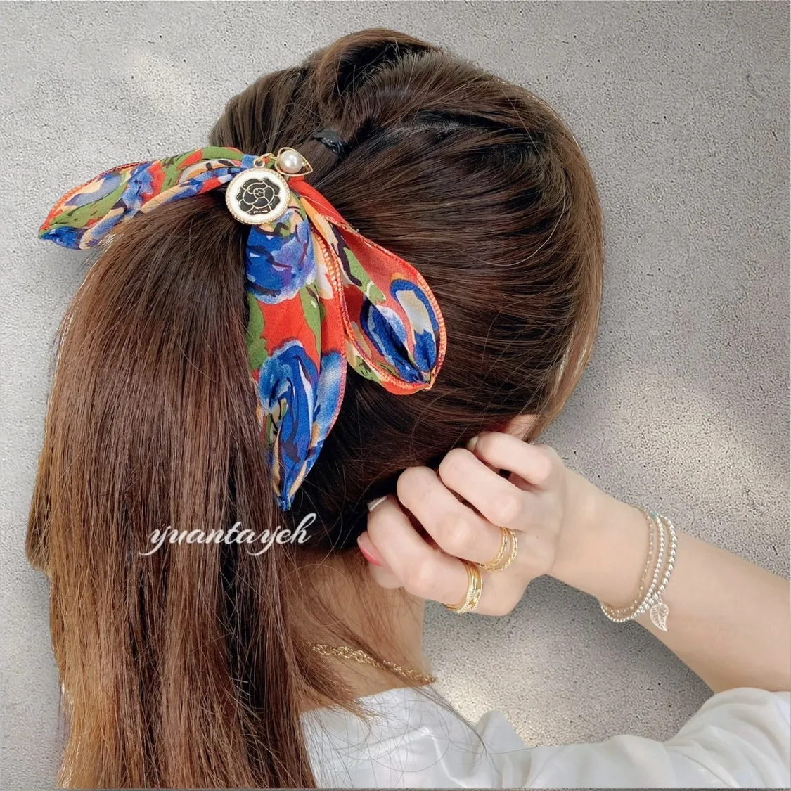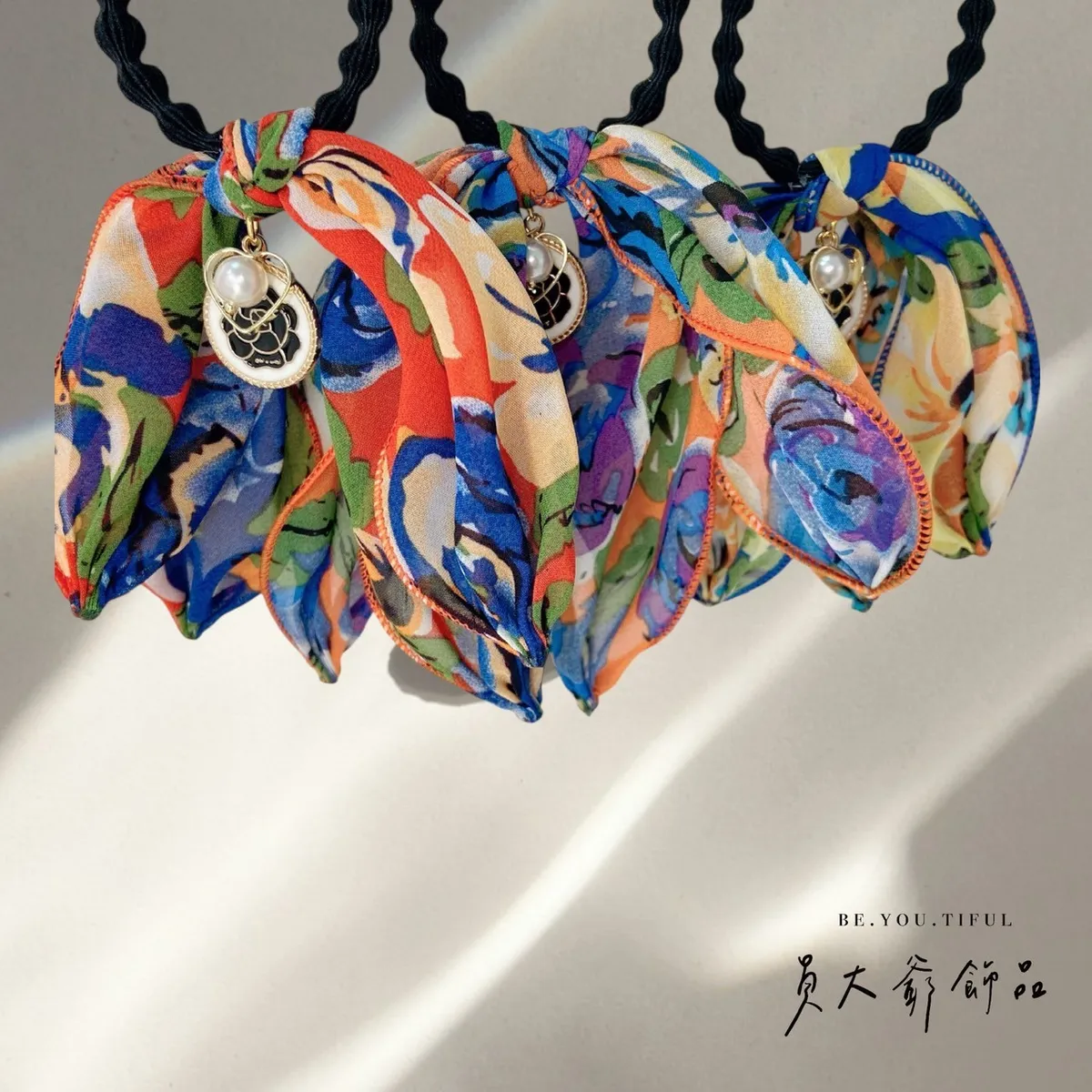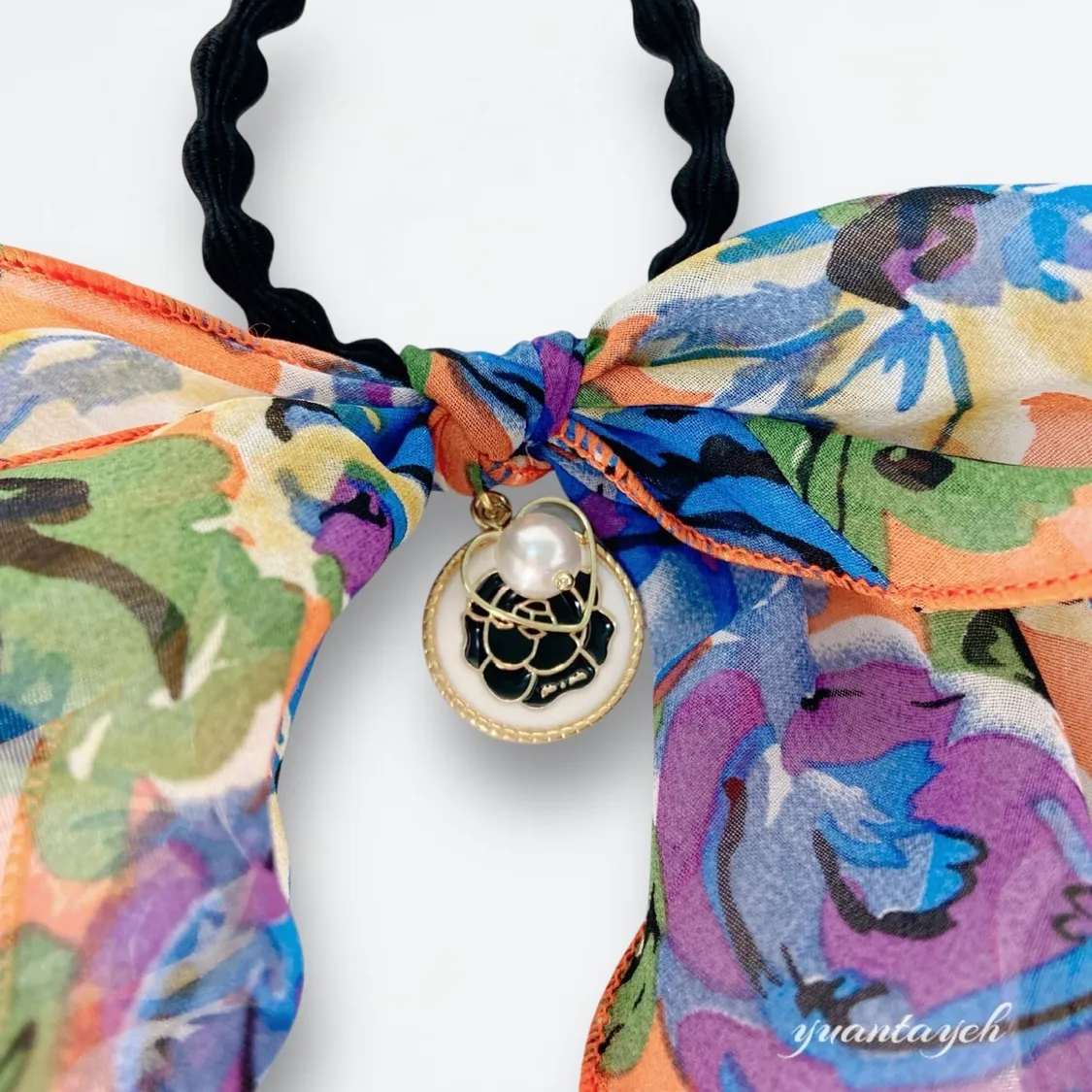 商品描述:以繽紛花卉作為設計靈感,搭配髮束設計,行走間自然飄逸,散發優雅氛圍。輕鬆綁髮即可擁有時尚造型,是日常必備的甜美小物。溫馨提醒