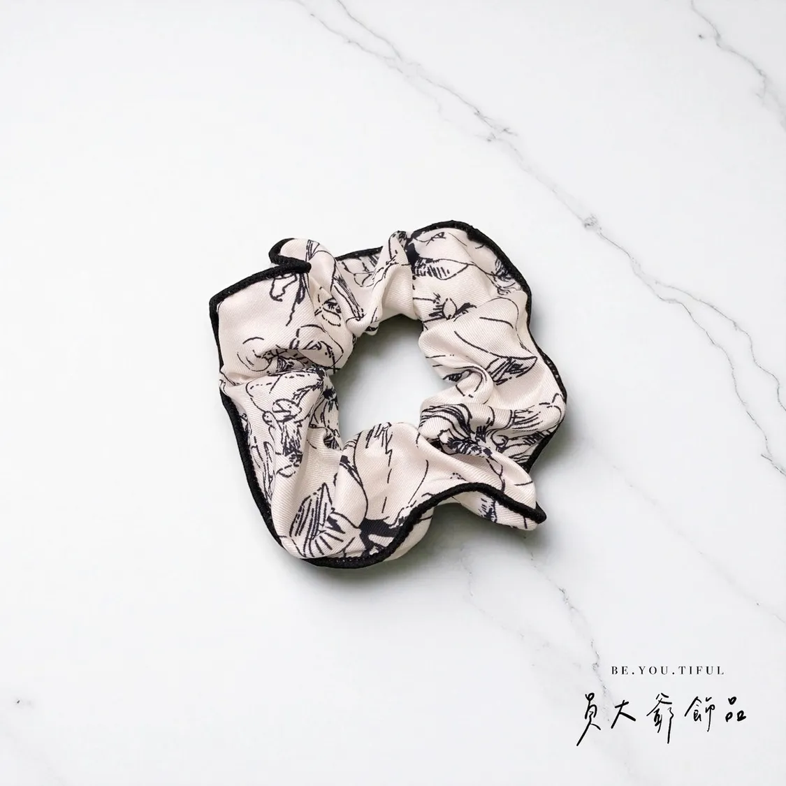 商品描述:以水墨暈染花卉為靈感,搭配飽滿柔軟的布料,展現優雅與浪漫。鬆緊舒適,綁髮或當手飾皆適合,百搭又時尚。