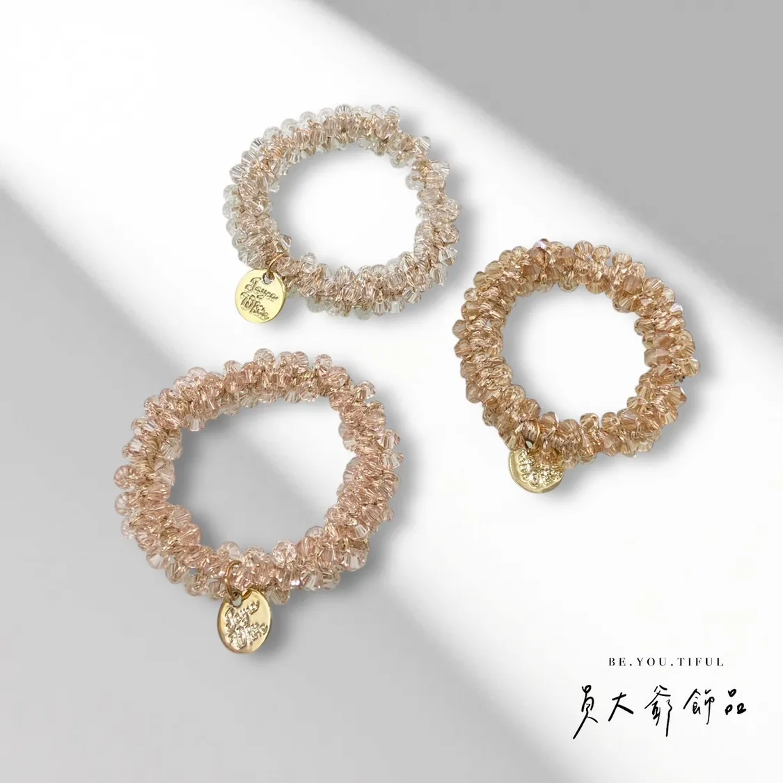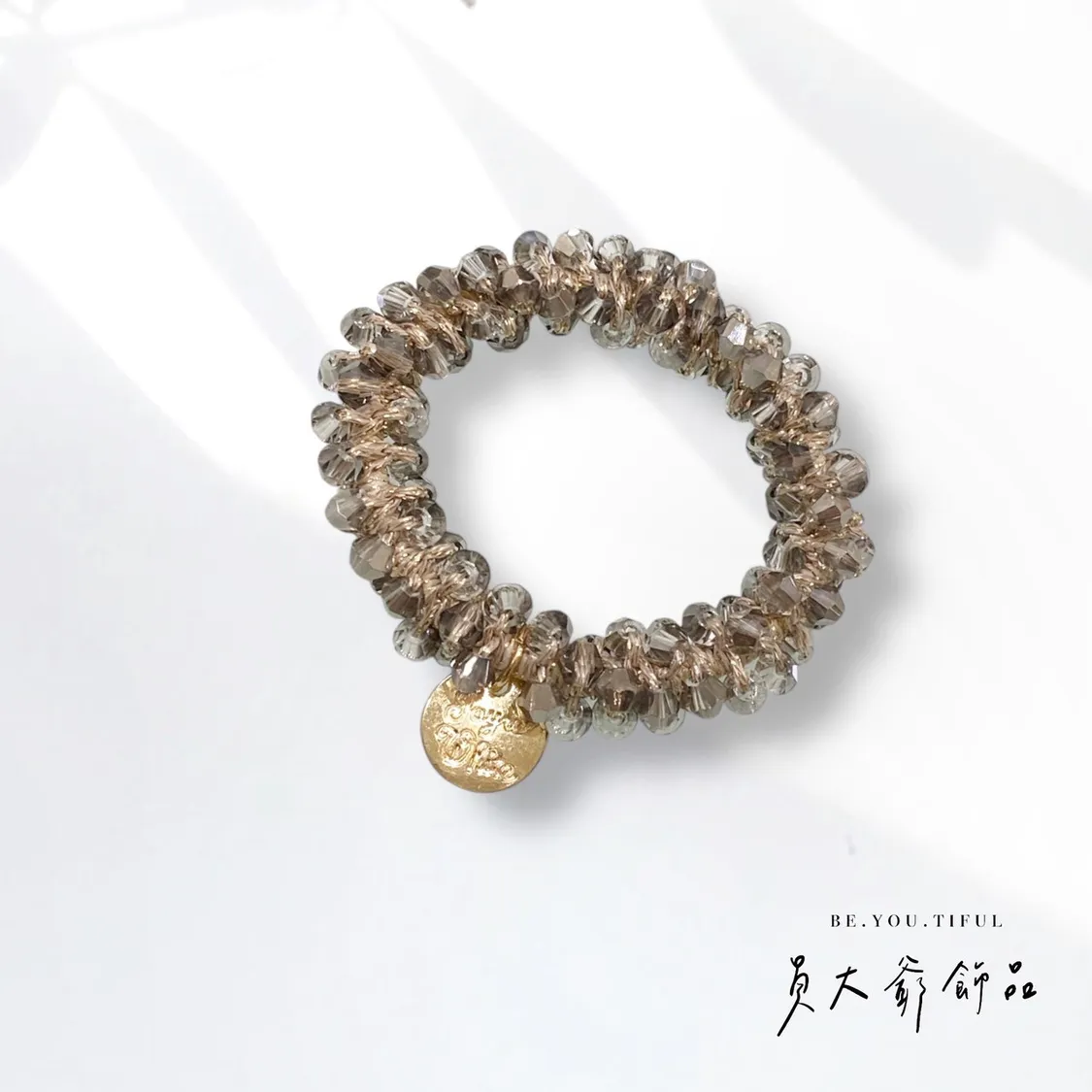 商品描述:低調奢華的水晶切面光澤,隨著光影流轉折射細膩亮感。柔韌彈力圈設計,既能牢牢固定髮絲,又能當作手環配戴,隨時展現時尚品味。