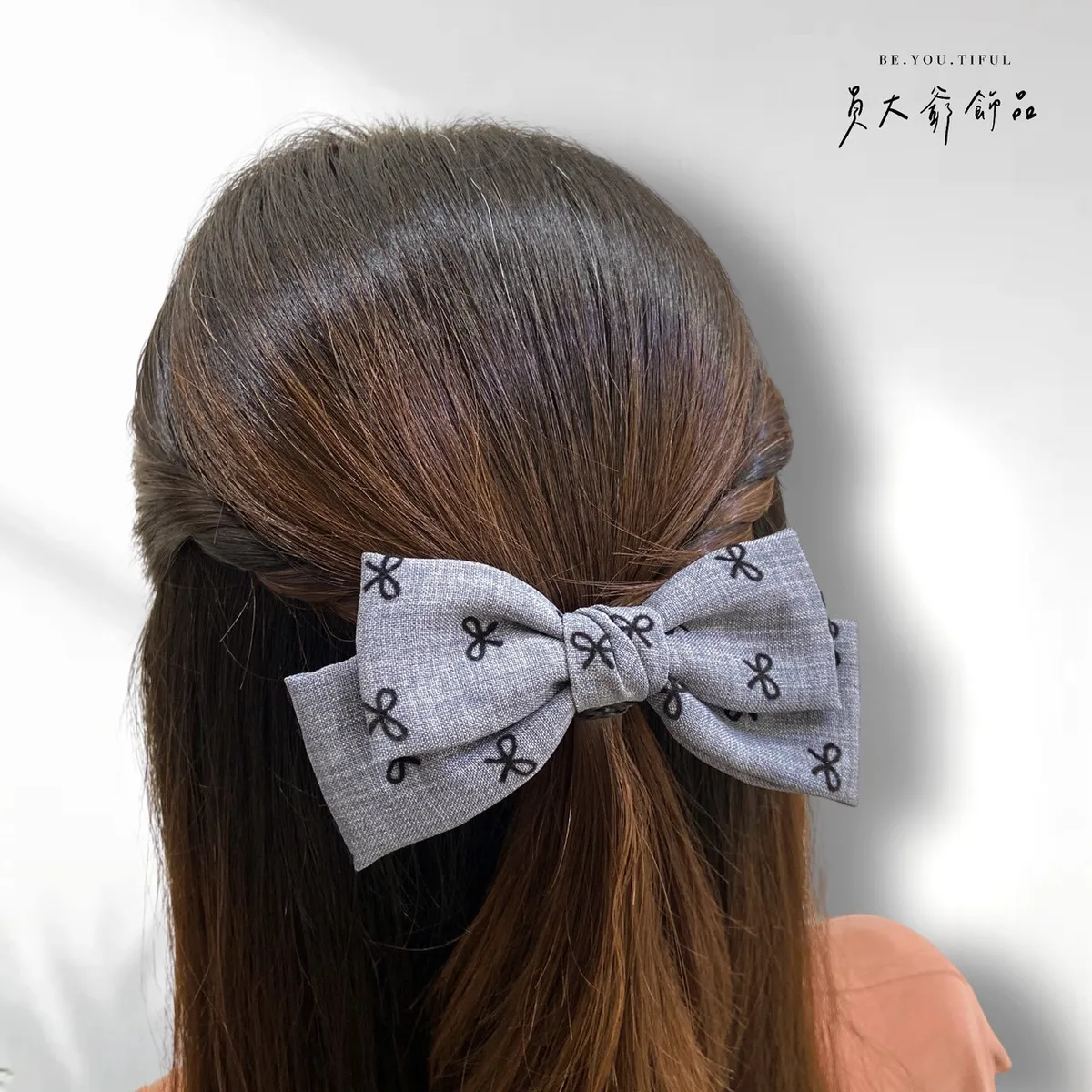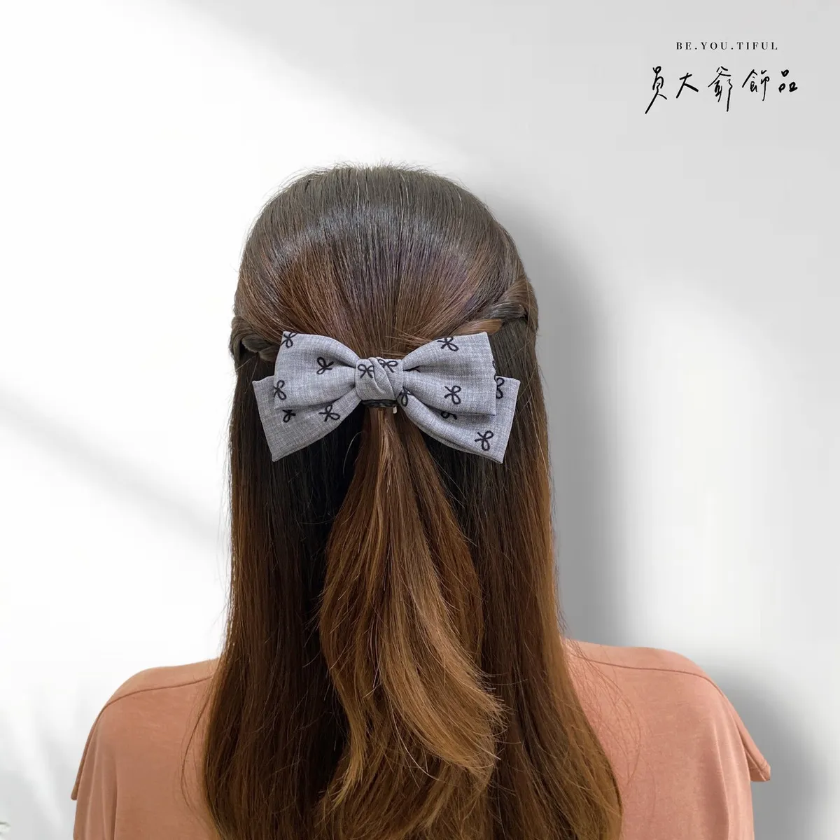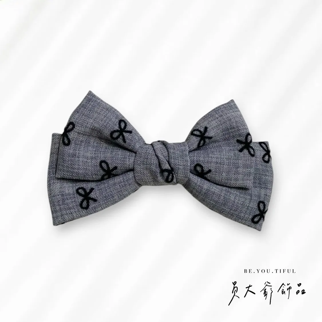 商品描述:韓系極簡線條蝴蝶結,以霧灰布面搭配細緻蝴蝶緞帶印花,低調卻不失存在感。適合通勤、日常與半正式造型,展現柔和自信氣質。