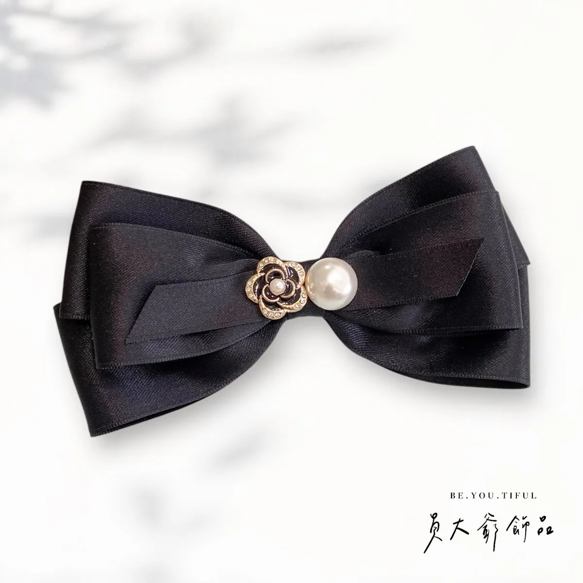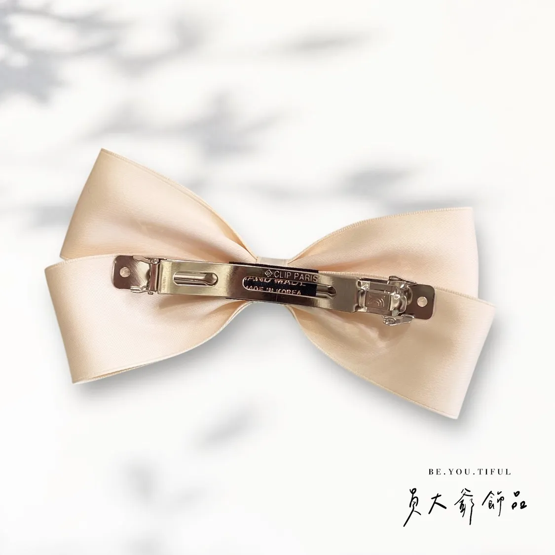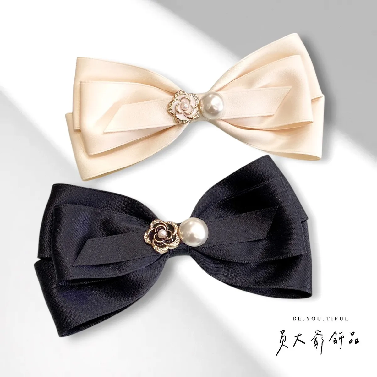 商品描述:極簡線條與光澤珍珠點綴,散發低調的奢華氣息。緞面材質搭配韓式立體蝴蝶結造型,優雅中帶點俐落。無論是上班造型或宴會場合,都能展現品味與氣質。溫馨提醒