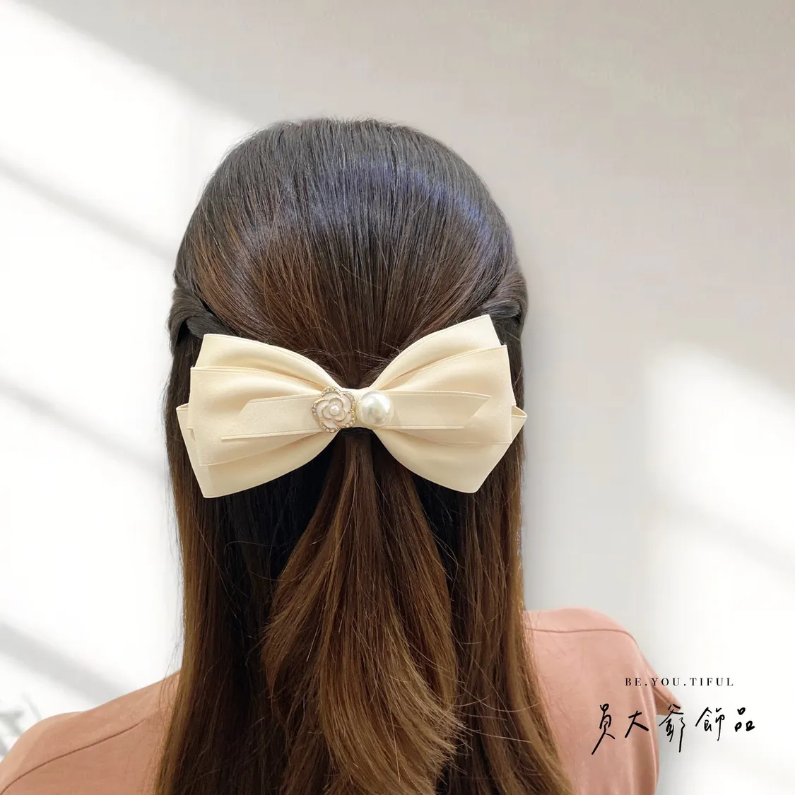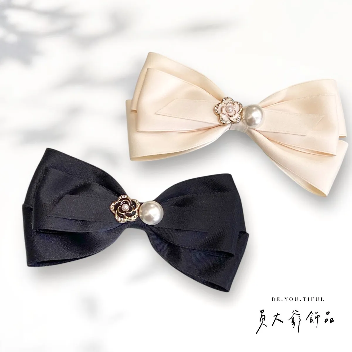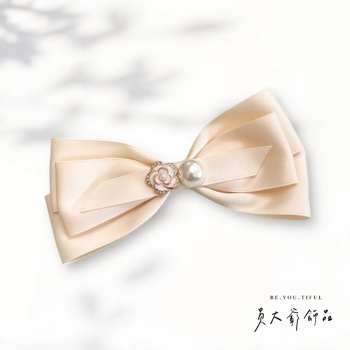 商品描述:極簡線條與光澤珍珠點綴,散發低調的奢華氣息。緞面材質搭配韓式立體蝴蝶結造型,優雅中帶點俐落。無論是上班造型或宴會場合,都能展現品味與氣質。溫馨提醒