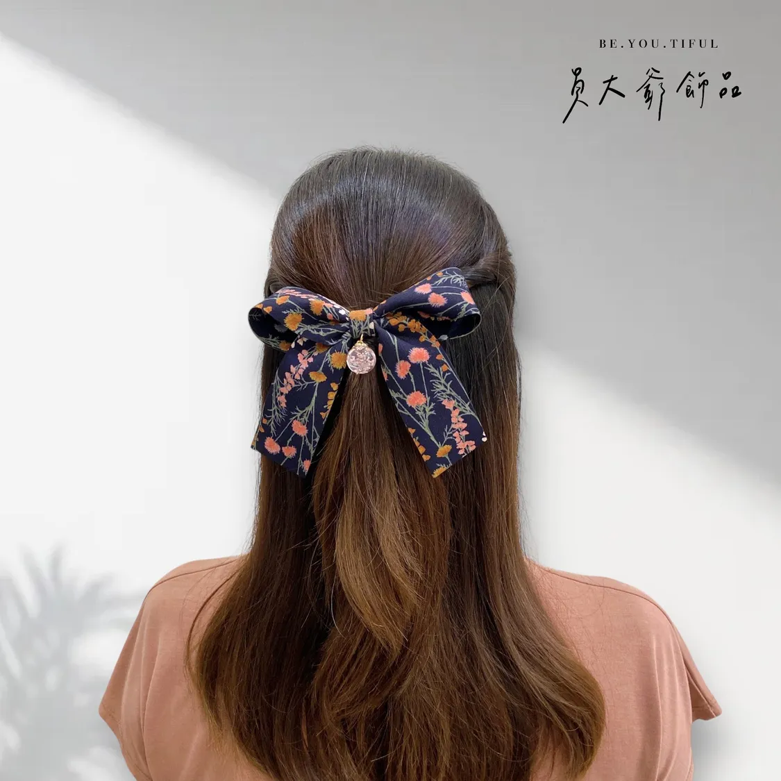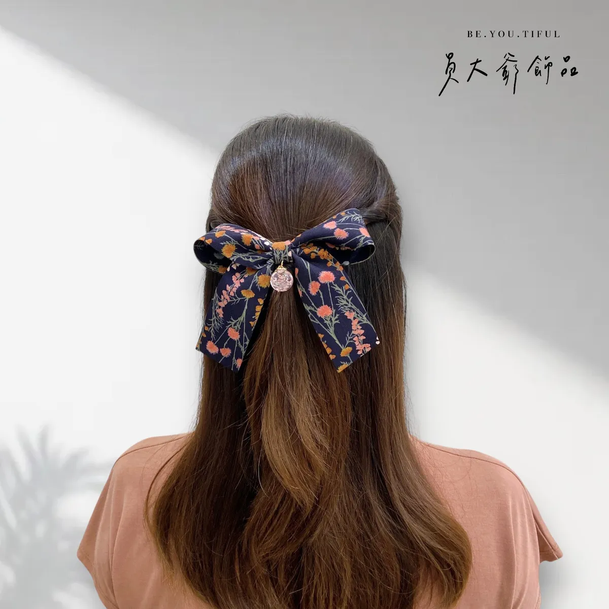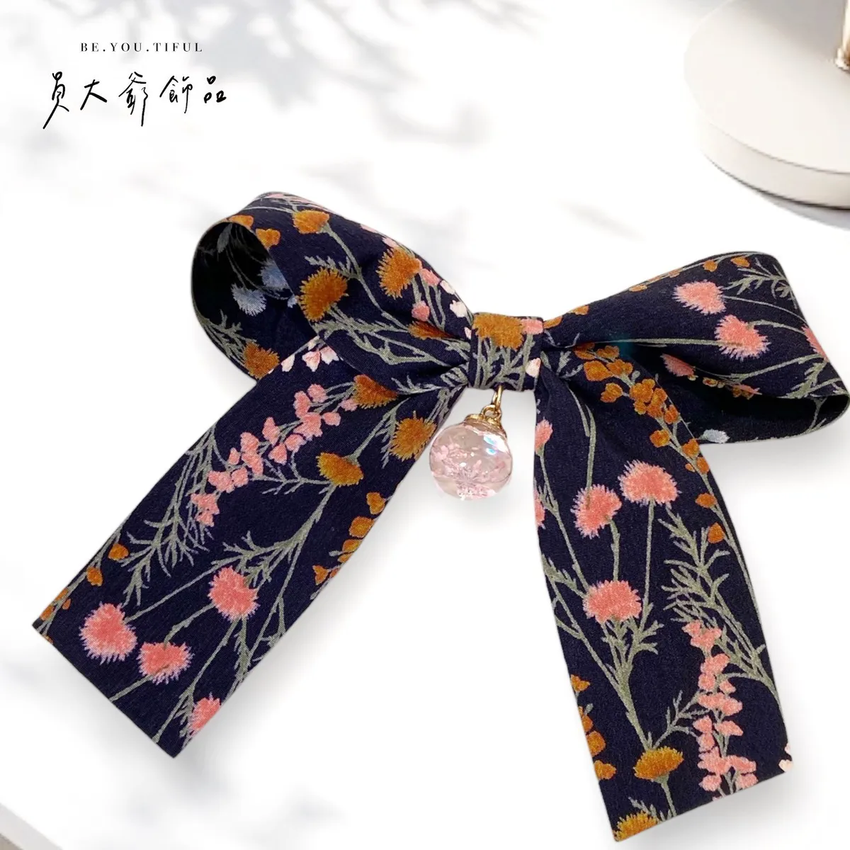 商品描述:以暗色系底布襯托細緻花卉圖騰,宛如夜色中綻放的花朵。中間飾以水鑽點綴,柔亮動人。輕鬆打造法式浪漫氣息,讓造型充滿故事感。溫馨提醒