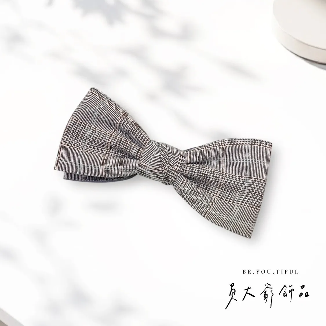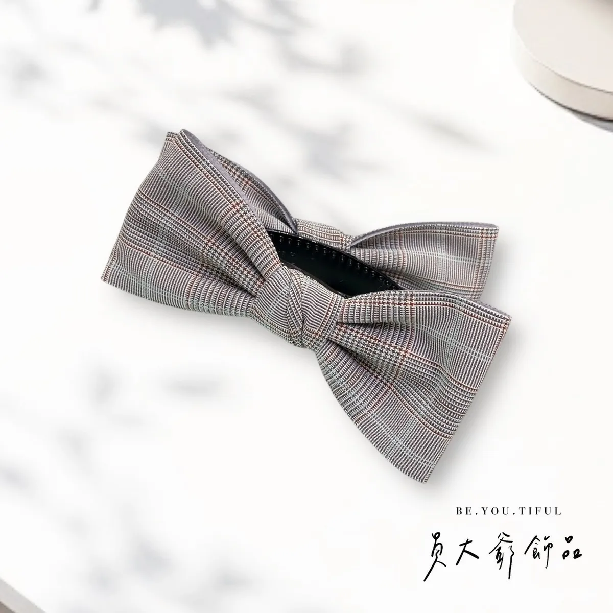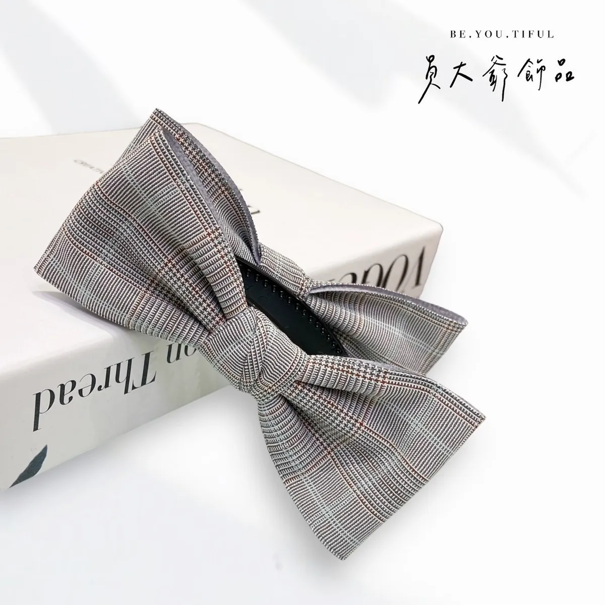 商品描述:飽含質感的細緻格紋布料,打造出極具品味的溫柔蝴蝶結。文青系、通勤穿搭都非常適合,低調又耐看,戴上瞬間提升時尚感。