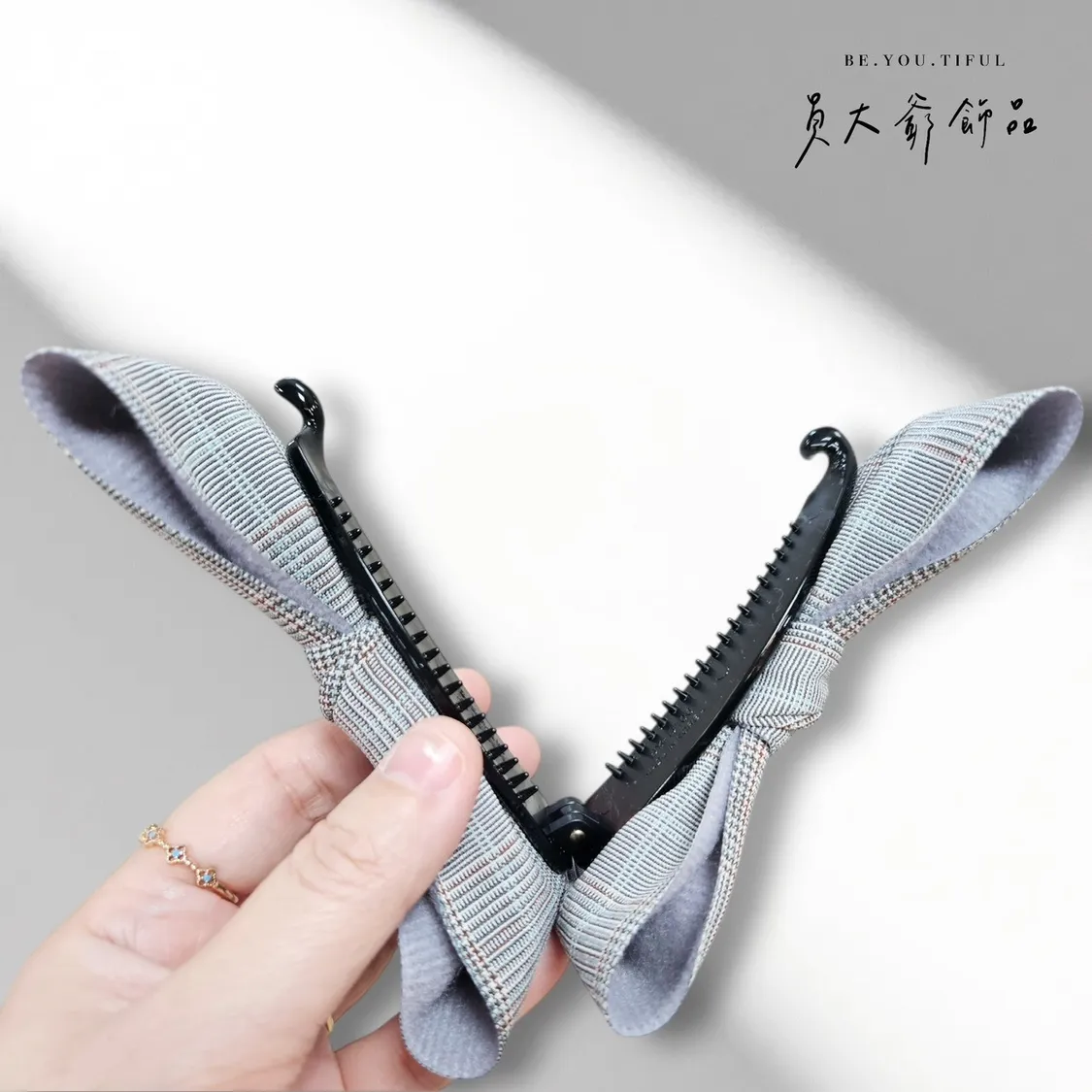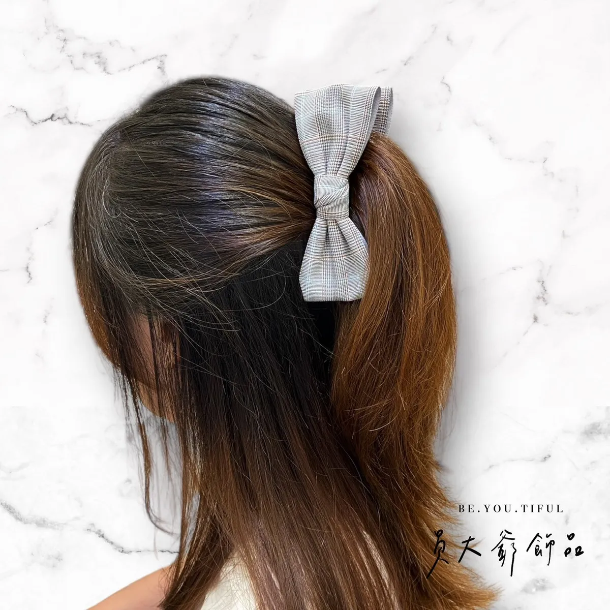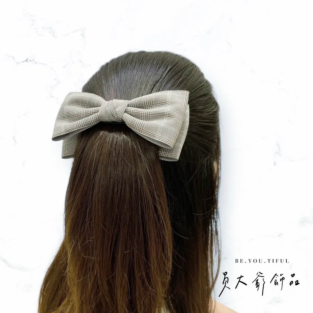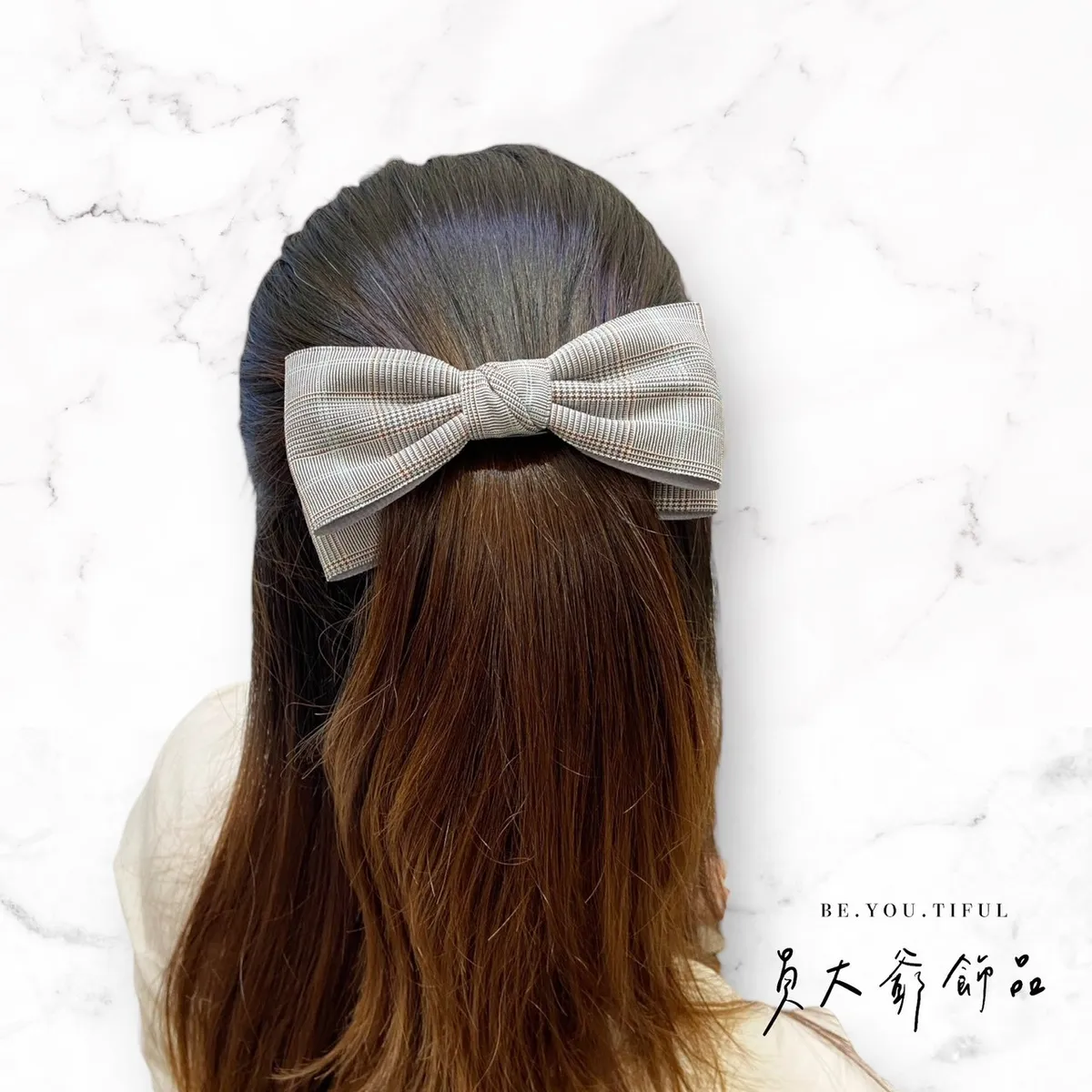 商品描述:飽含質感的細緻格紋布料,打造出極具品味的溫柔蝴蝶結。文青系、通勤穿搭都非常適合,低調又耐看,戴上瞬間提升時尚感。