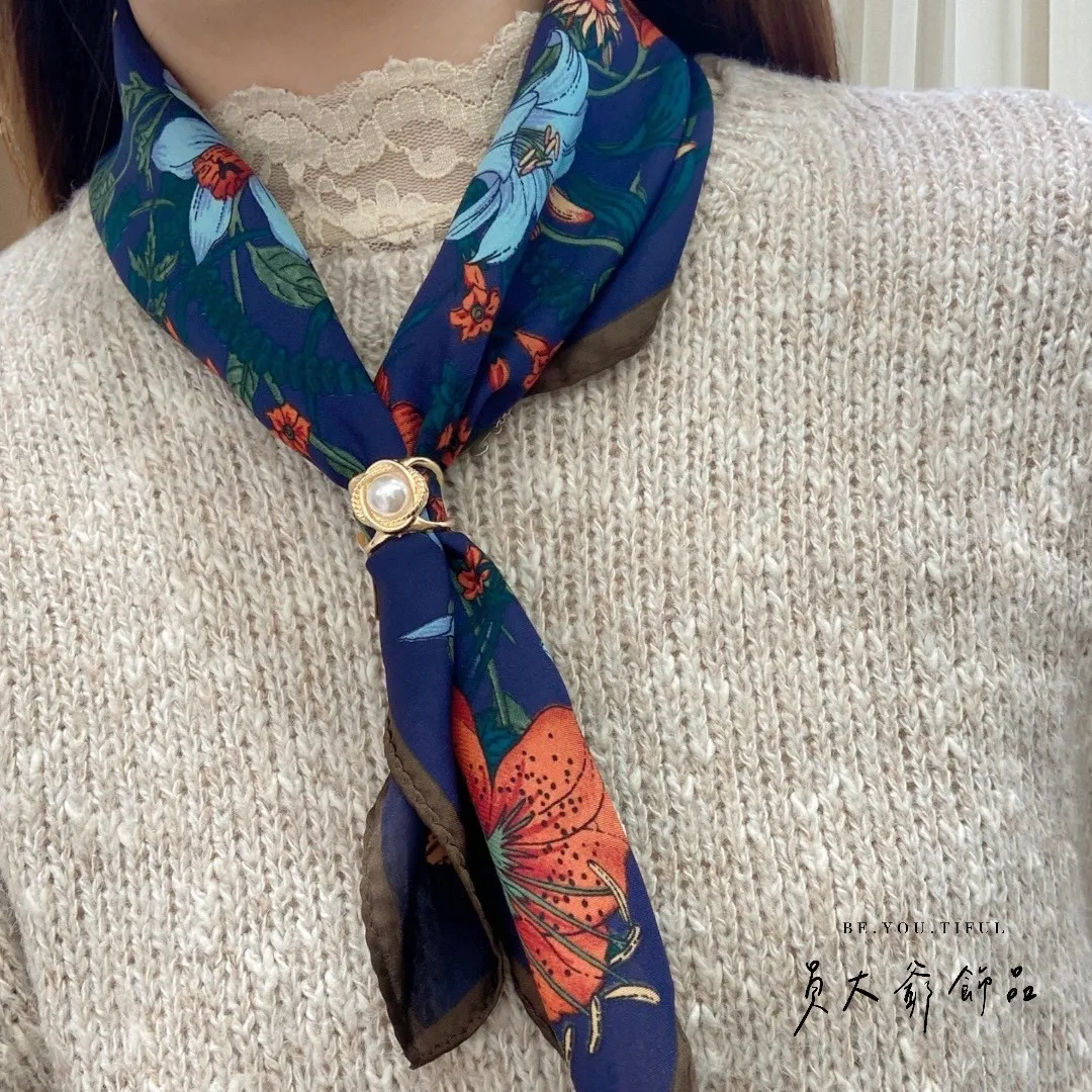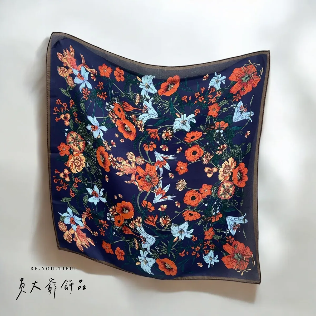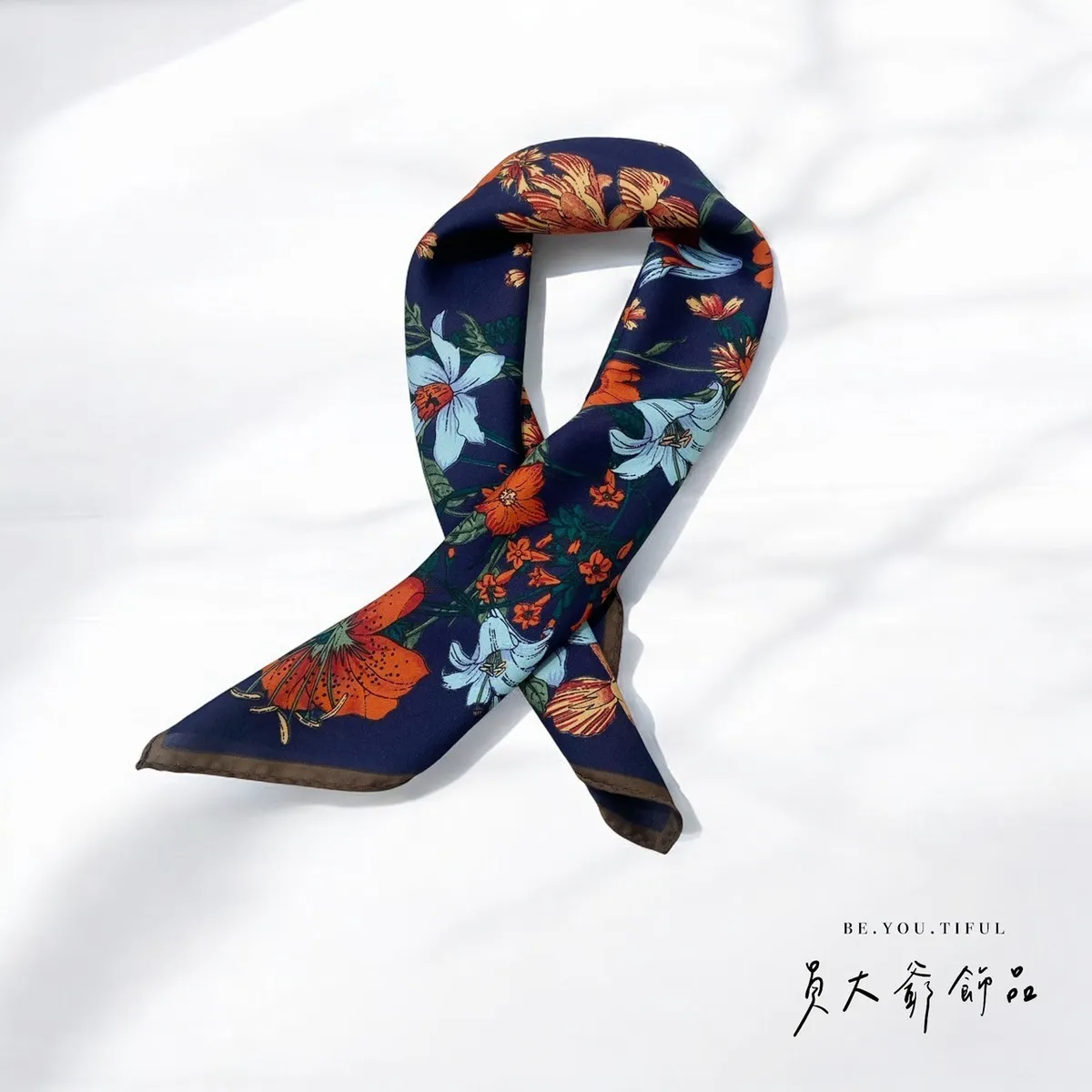 商品描述:充滿花卉圖案的絲巾,展現浪漫與活力。